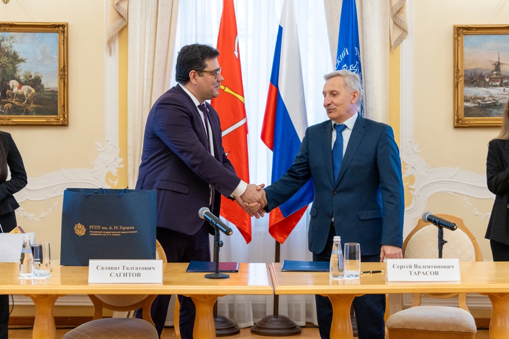 Ректоры Башкирского государственного педагогического университета имени М. Акмуллы Салават Сагитов и Российского государственного педагогического университета им. А.И. Герцена Сергей Тарасов подписали соглашение о сотрудничестве. Этот важный шаг направлен на укрепление взаимодействия между двумя ведущими педагогическими вузами Россия и развитие совместных образовательных проектов.
