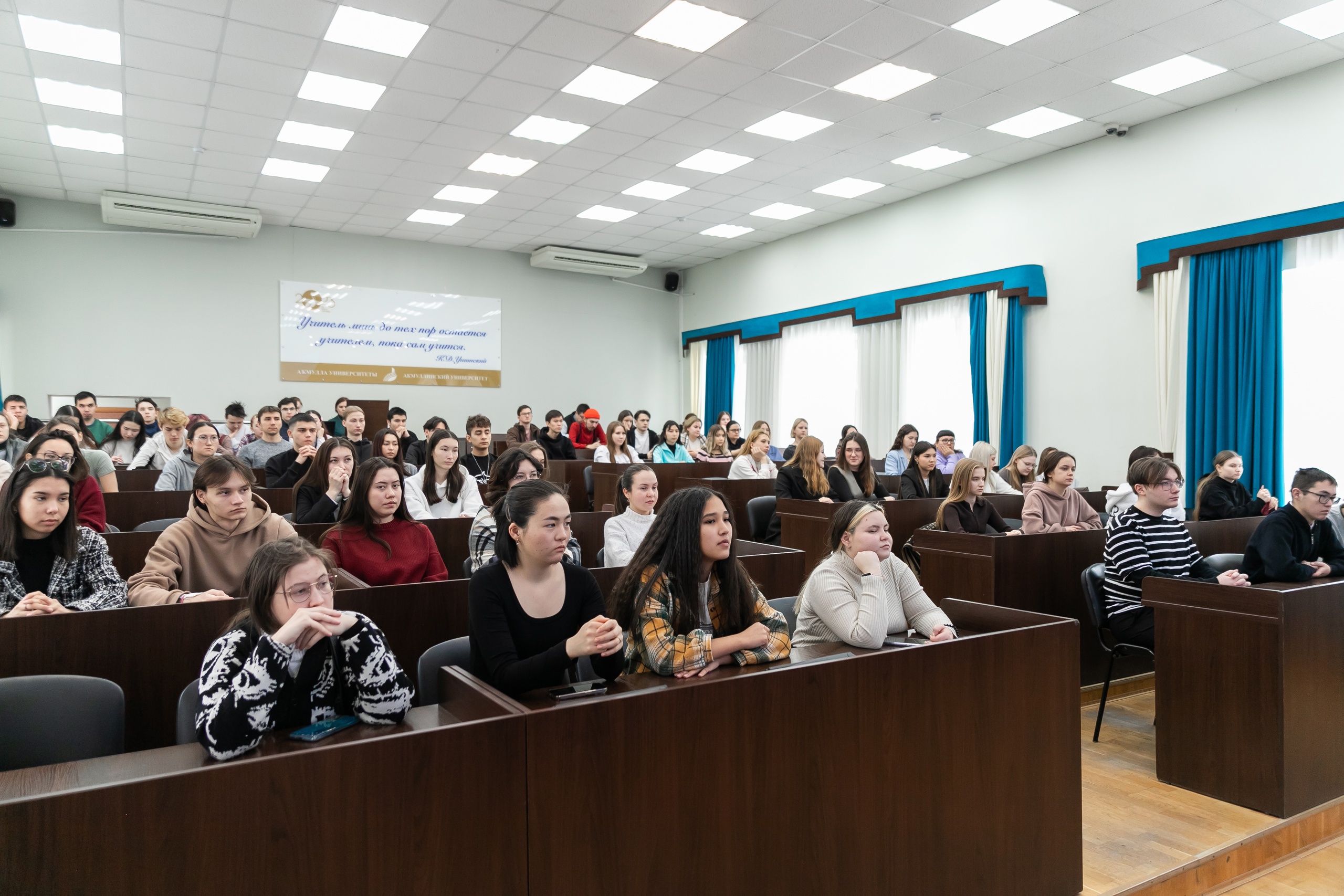 «У вас как у будущих учителей  обязательно должен быть правильный взгляд на эту проблему. Вы должны очень хорошо понимать все тонкости воспитания молодого поколения. Вам предстоит бороться за умы наших детей, на вас ляжет ответственность за их обучение и воспитание. Поэтому мы организовали эту встречу именно в педагогическом университете», – обратился к студентам Андрей Анатольевич.