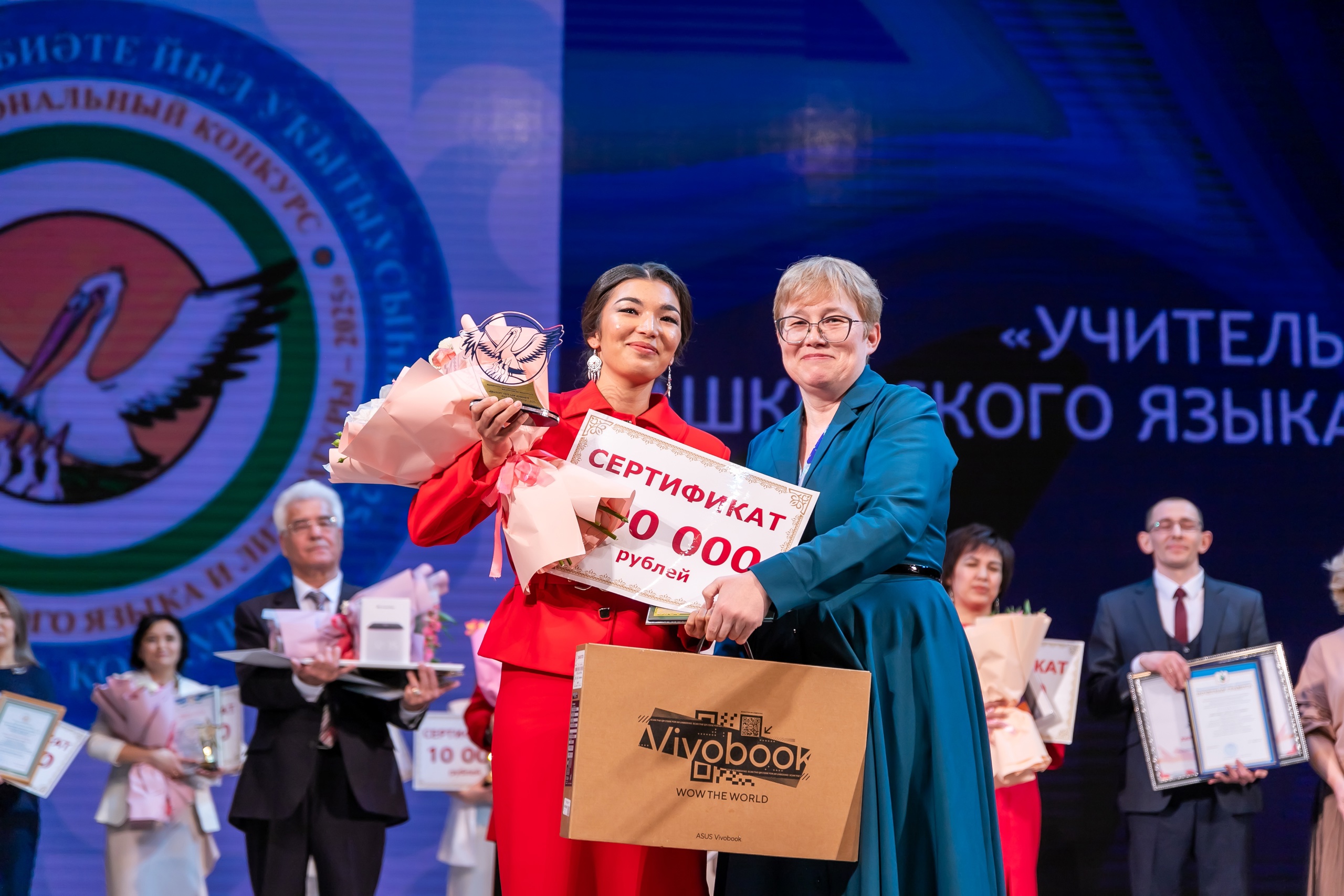 Награду в номинации «Учитель-профессионал» межрегионального конкурса «Учитель года башкирского языка и литературы» из рук Салавата Сагитова получила Гульназ Хужахметова, педагог Гимназии №3 им. Дж. Киекбаева г. Стерлитамак. В номинации «Профессии верны» наградили Филию Закирову из  Кулужбаевской основной общеобразовательной школы Челябинской области. В номинации «Педагогическая перспектива» победила Назгуль Юмашева, учитель Коротановской основной общеобразовательной школы  Чебаркульского района Челябинской области.