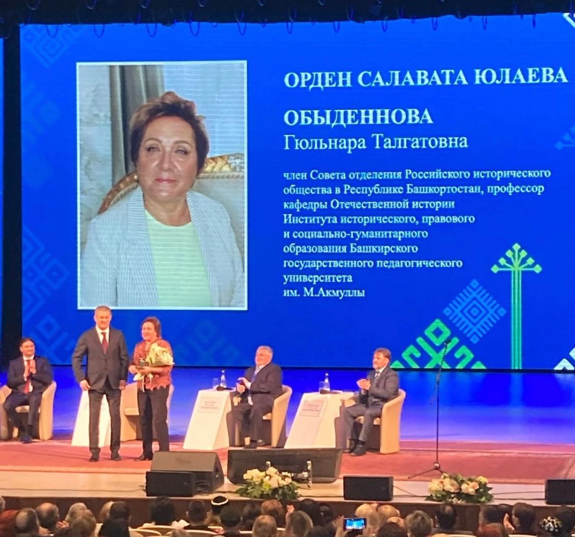 Орденом Салавата Юлаева награждена учёный-археолог, доктор исторических наук, профессор, ветеран Башкирского государственного педагогического университета им.М.Акмуллы Гюльнара Талгатовна Обыденнова.