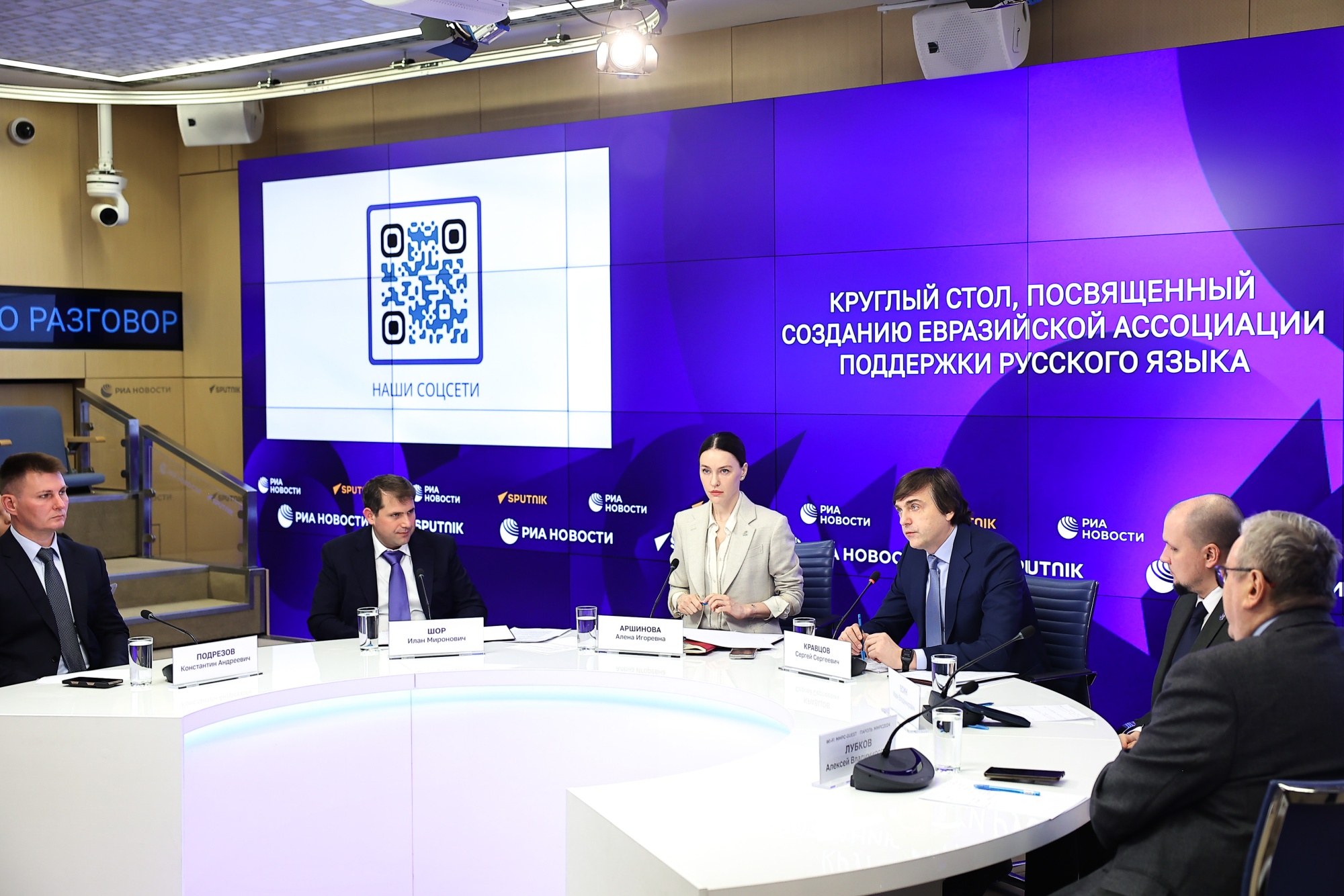 АНО «Евразия» при участии Минпросвещения России запускает Евразийскую ассоциацию поддержки русского языка. Об этом было объявлено на круглом столе в пресс-центре МИА «Россия сегодня». Участие в мероприятии приняли Министр просвещения России Сергей Кравцов, первый заместитель председателя Комитета Государственной Думы по просвещению, председатель Совета АНО «Евразия» Алена Аршинова, член попечительского Совета АНО «Евразия», меценат Илан Шор, а также ректоры педагогических вузов.