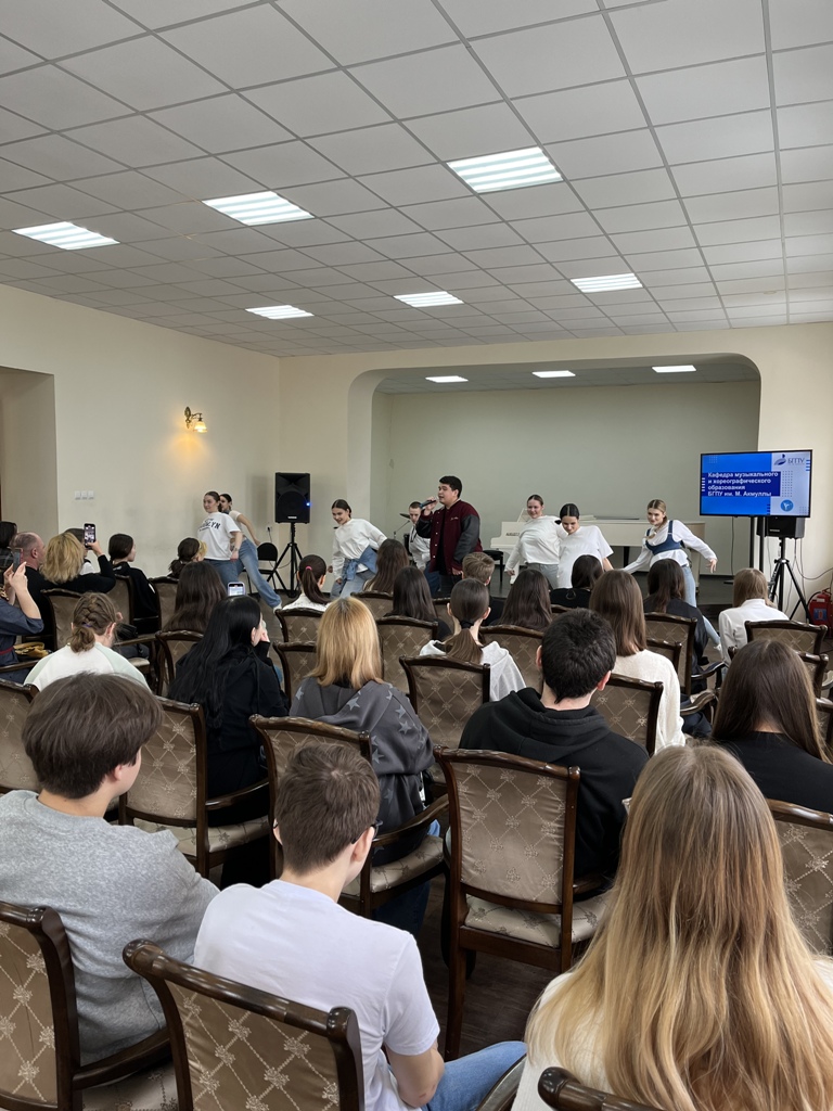 В Институте педагогики будущие абитуриенты познакомились с одним из направлений социально-педагогической деятельности – профилактикой девиантного поведения средствами здорового образа жизни, узнали о методиках работы дефектологов, логопедов и педагогов начальной школы, поиграли в игры на сплочение команды и прошли профессиональные пробы. Кафедра музыкального и хореографического образования института организовала для гостей небольшой концерт преподавателей и студентов, а также показала работу над танцевальными и вокальными номерами.