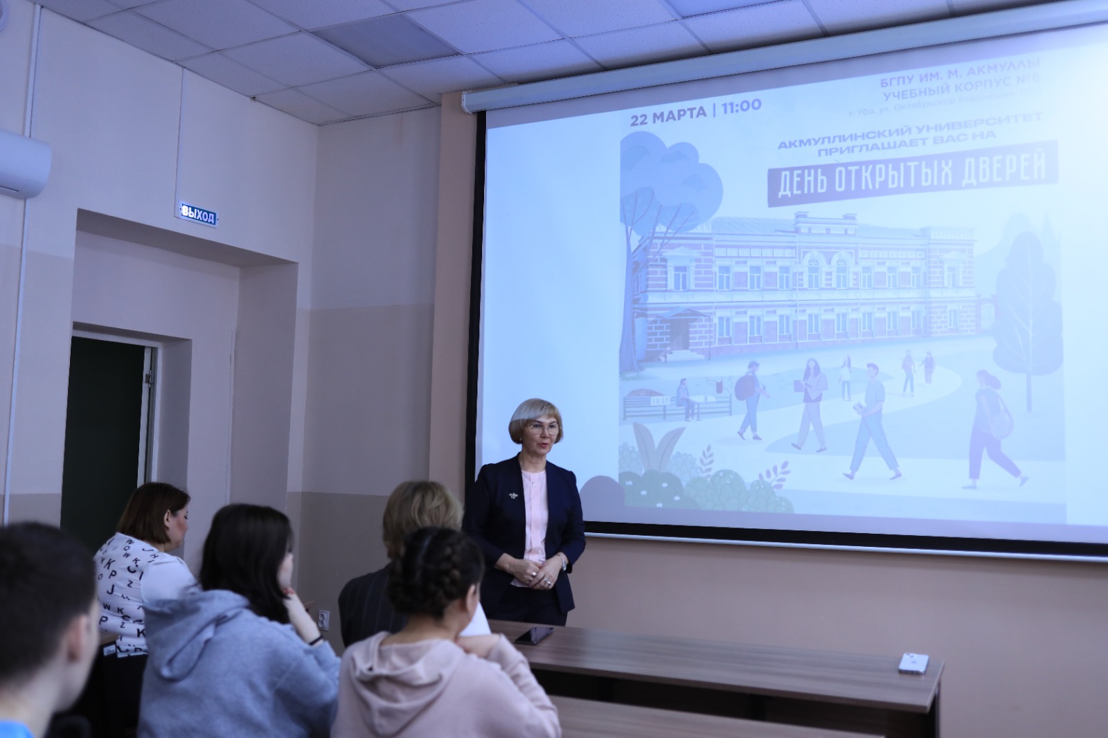 22 марта в Башкирском государственном педагогическом университете им. М. Акмуллы  состоялся День открытых дверей институтов и факультетов. Будущие абитуриенты, их родители и педагоги узнали о направлениях подготовки, посетили лаборатории и мастерские, познакомились с преподавателями и студентами. Всего гостями вуза в этот день стали около 1000 человек.
