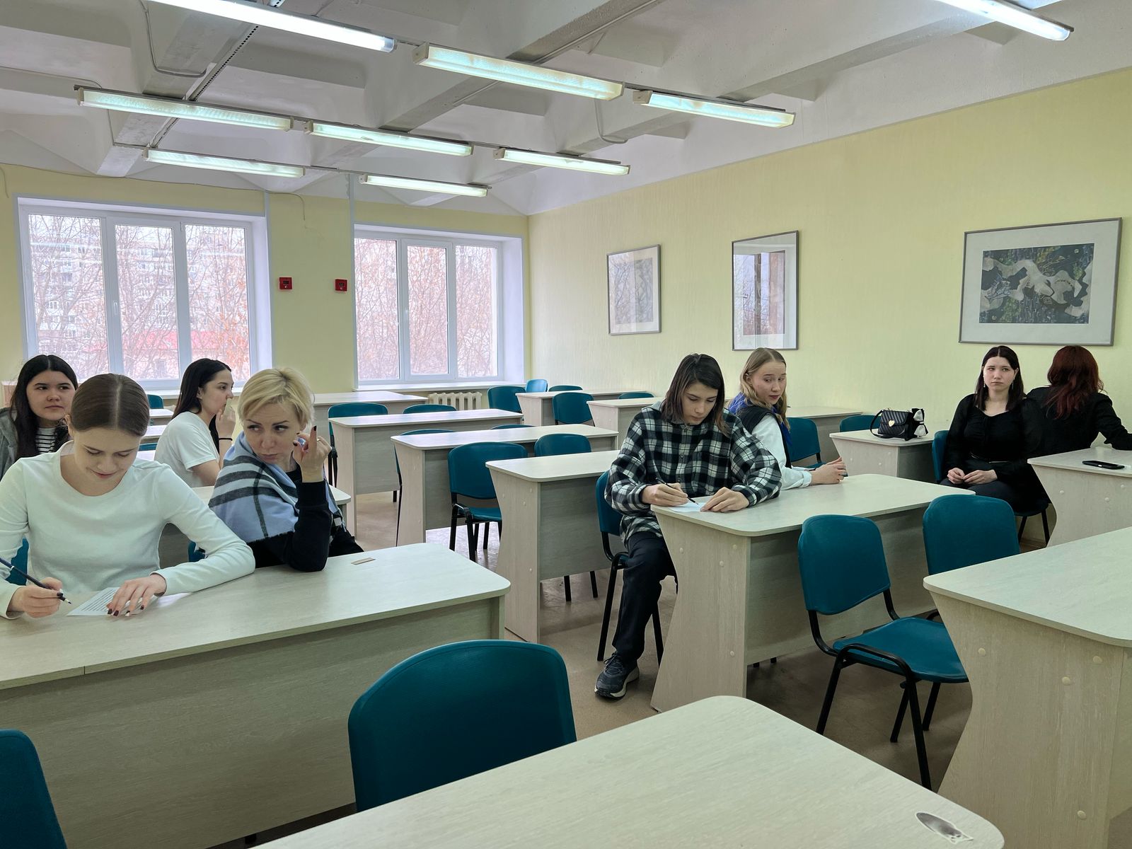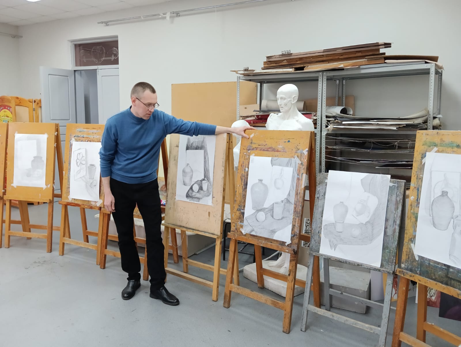 На художественно-графическом факультете состояла консультация и пробный экзамен по творческому экзамену «Академический рисунок». Школьники рисовали натюрморт с гипсовой розеткой и получили разбор наиболее распространенных ошибок.