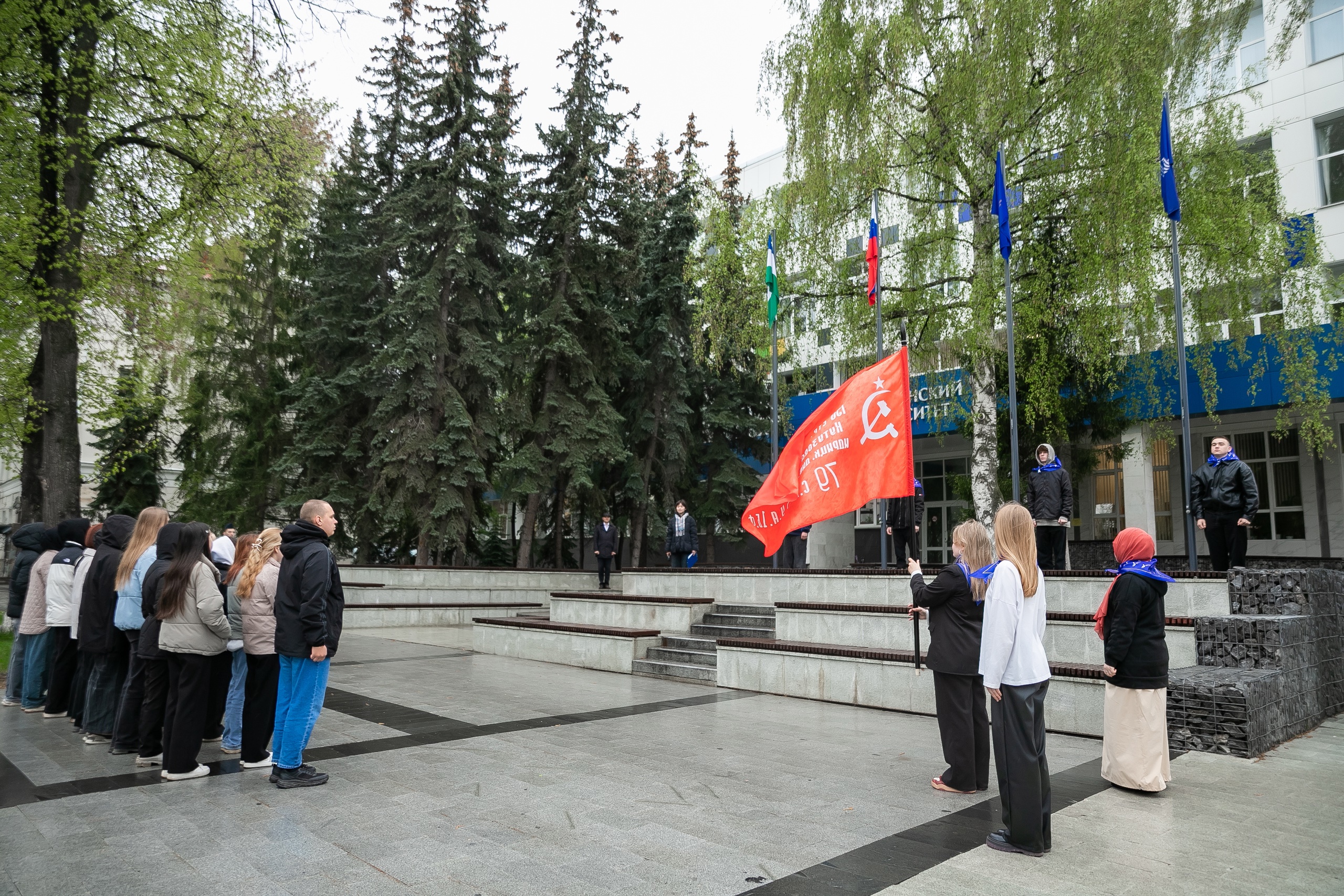 Также состоялась церемония передачи копии Знамени Победы от студентов колледжа БГПУ им. М. Акмуллы участникам студенческого клуба «Яугир-Воин».