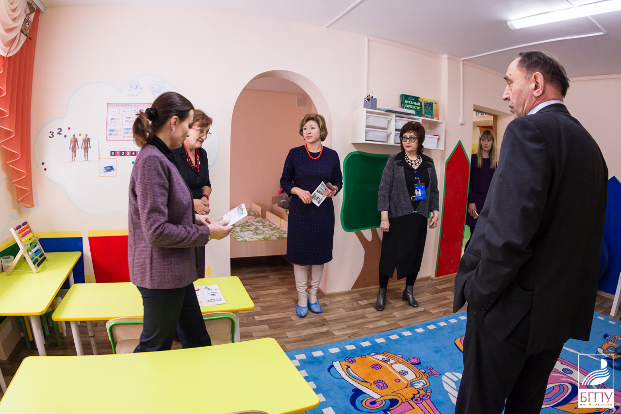 2 февраля 2018г. в БГПУ прошла первая рабочая встреча представителей министерства семьи, труда и социальной защиты РБ во главе с министром Ленарой Хакимовной Ивановой, министра образования РБ Гульназ Радмиловна Шафиковой и сотрудников Института семьи и детства во главе с директором Леной Фаритовной Хайртдиновой. Цель рабочей встречи - установление научно-методического сотрудничества с Институтом семьи и детства БГПУ им. М. Акмуллы.  Министры ознакомились с деятельностью центром детского развития «Котоффkids” для детей студентов и сотрудников вуза. Посетили центры развития компетенций, лаборатории, мобильный детский сад педуниверситета. В ходе рабочего совещания сотрудниками Института семьи и детства были представлены проекты и программы по таким направлениям -как организация мониторинга и оценки качества оказываемых социальных услуг семьям; повышения квалификации социальных работников  и специалистов по работе с семьей; создание моделей групп присмотра и ухода за детьми раннего возраста, оказания ранней помощи детям с ОВЗ; сопровождение досуговых центров для пожилых людей, центров реабилитации лиц с инвалидностью; поддержки сельской семьи и обучение педагогов современным технологиям  по работе с семьями.
