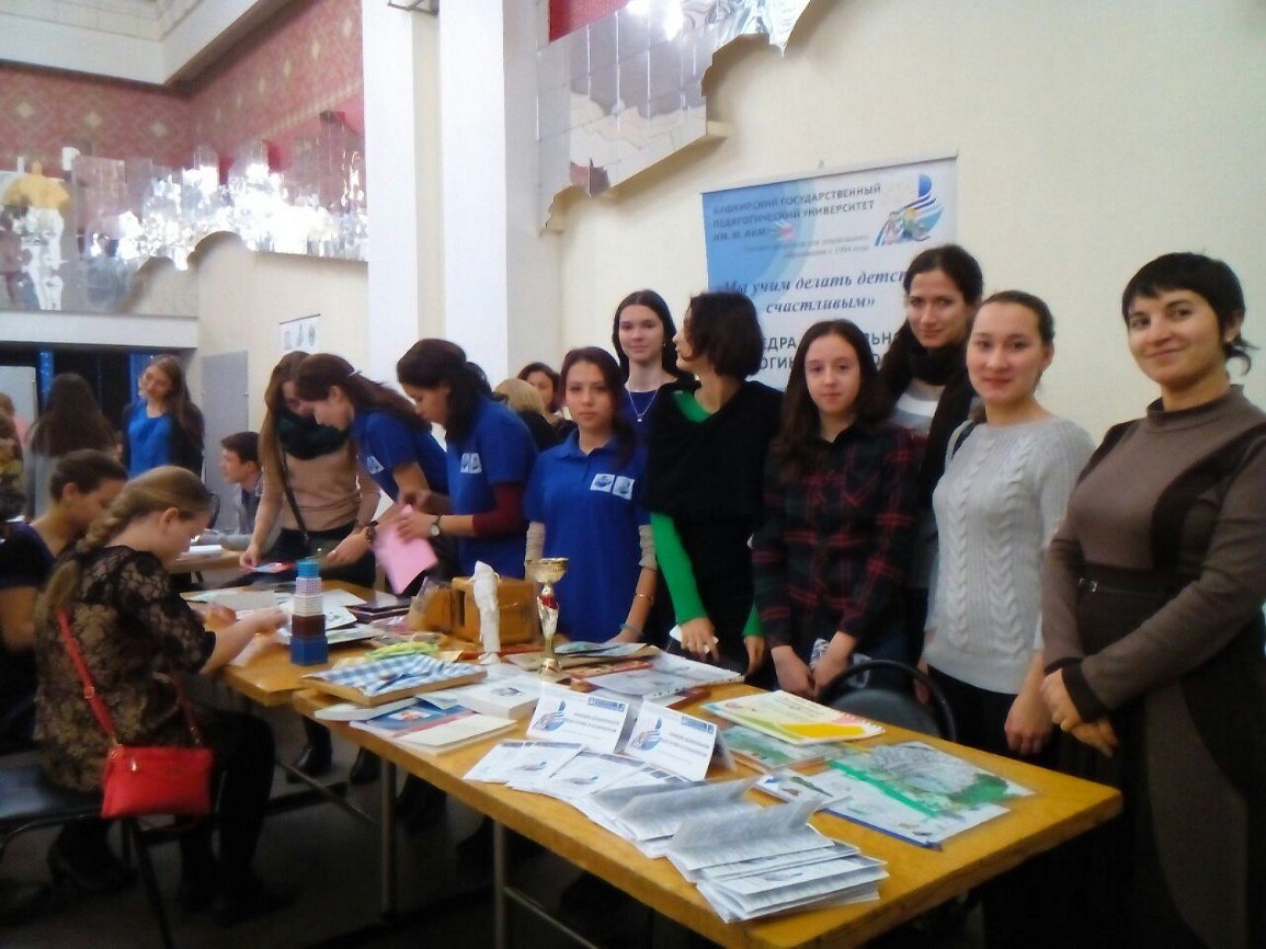 5 декабря 2016 г. Институт семьи и детства БГПУ им. М. Акмуллы (под руководством директора Института педагогики, профессора Исламовой З.И. и доц. Хайртдиновой Л.Ф.) провел благотворительное мероприятие, посвященное Международному Дню инвалида в Городском дворце культуры г. Уфы. Организаторами мероприятия выступили: Уфимская городская Организация инвалидов «МИР», Институт семьи и детства БГПУ им. М. Акмуллы. Цель мероприятия: организация досуга инвалидов, привлечение внимания общественности к проблемам инвалидов, знакомство с творчеством и произведениями народного промысла людей с инвалидностью, презентация социально-образовательных и оздоровительных услуг, предоставляемых Институтом семьи и детства БГПУ им. Акмуллы для людей с ограниченными возможностями здоровья и их семьям. Студенты 1, 2 курсов ППО ДО и преподавательский состав кафедры дошкольной педагогики и психологии Института педагогики (зав.каф., к.п.н., доц. Боронилова И.Г., к.п.н., доц. Шабаева Г.Ф., ст. преп. Валеева Л.Ю.), а так же заведующая МАДОУ № 162, супервизор-консультант, магистр психолого-gедагогического образования Танюкевич А.В. приняли активное участие в работе интерактивных площадок.
