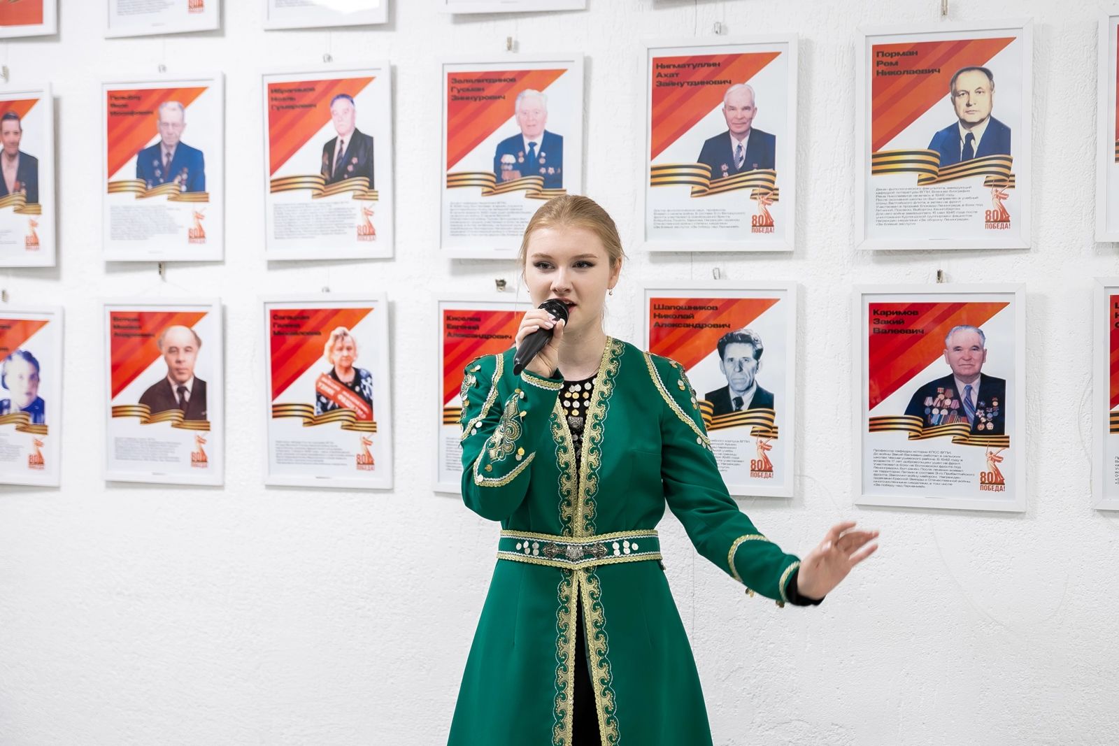 Продолжается череда мероприятий в преддверии празднования 80-летия Великой Победы – в Белом зале Акмуллинского университета открылась фотовыставка «Память и наследие: портреты ветеранов».