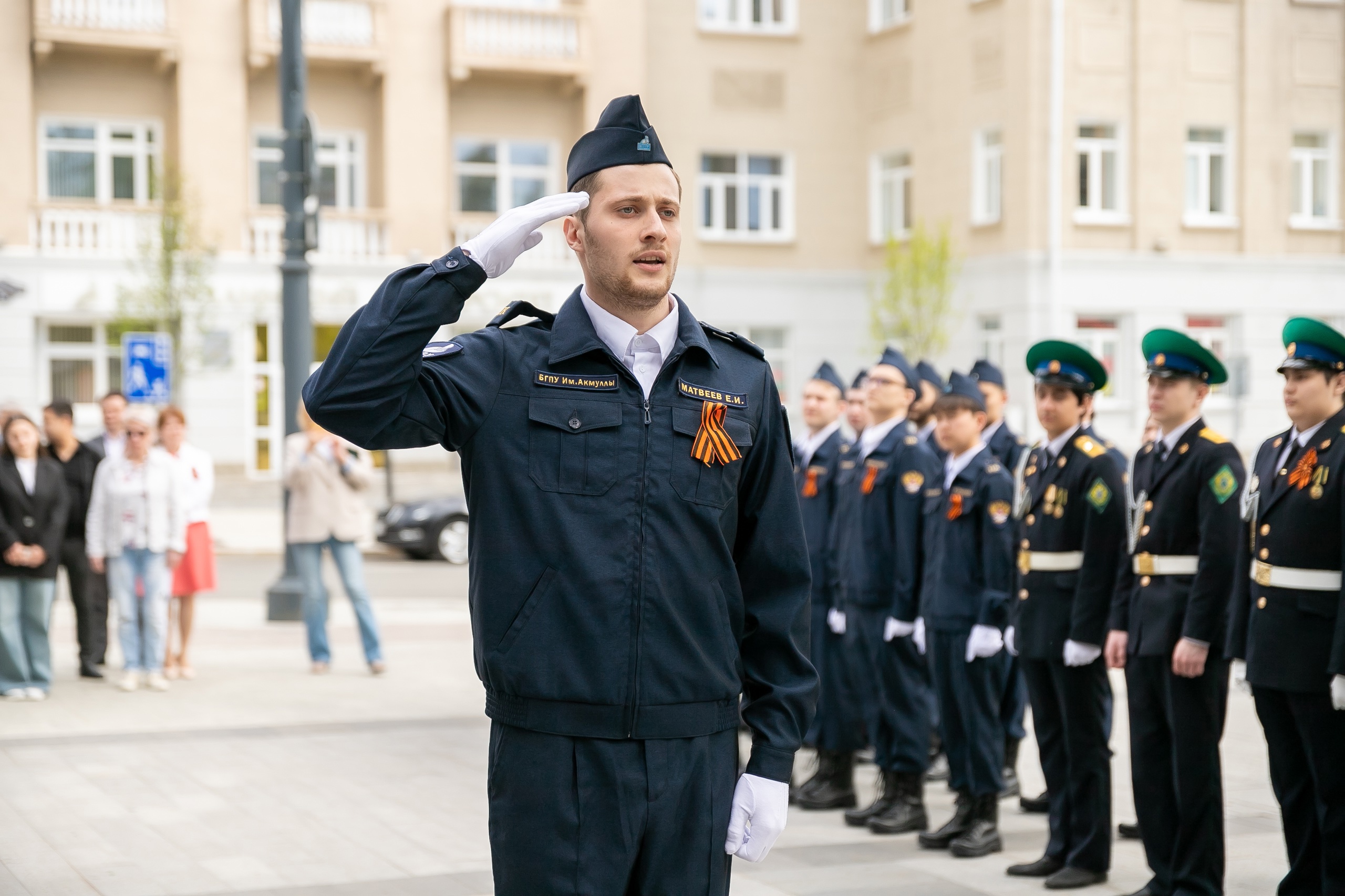 5 мая перед первым корпусом БГПУ им. М. Акмуллы состоялась торжественная церемония поднятия государственных флагов Российской Федерации, Республики Башкортостан, копий знамён Победы, 112-ой Башкирской кавалерийской дивизии.