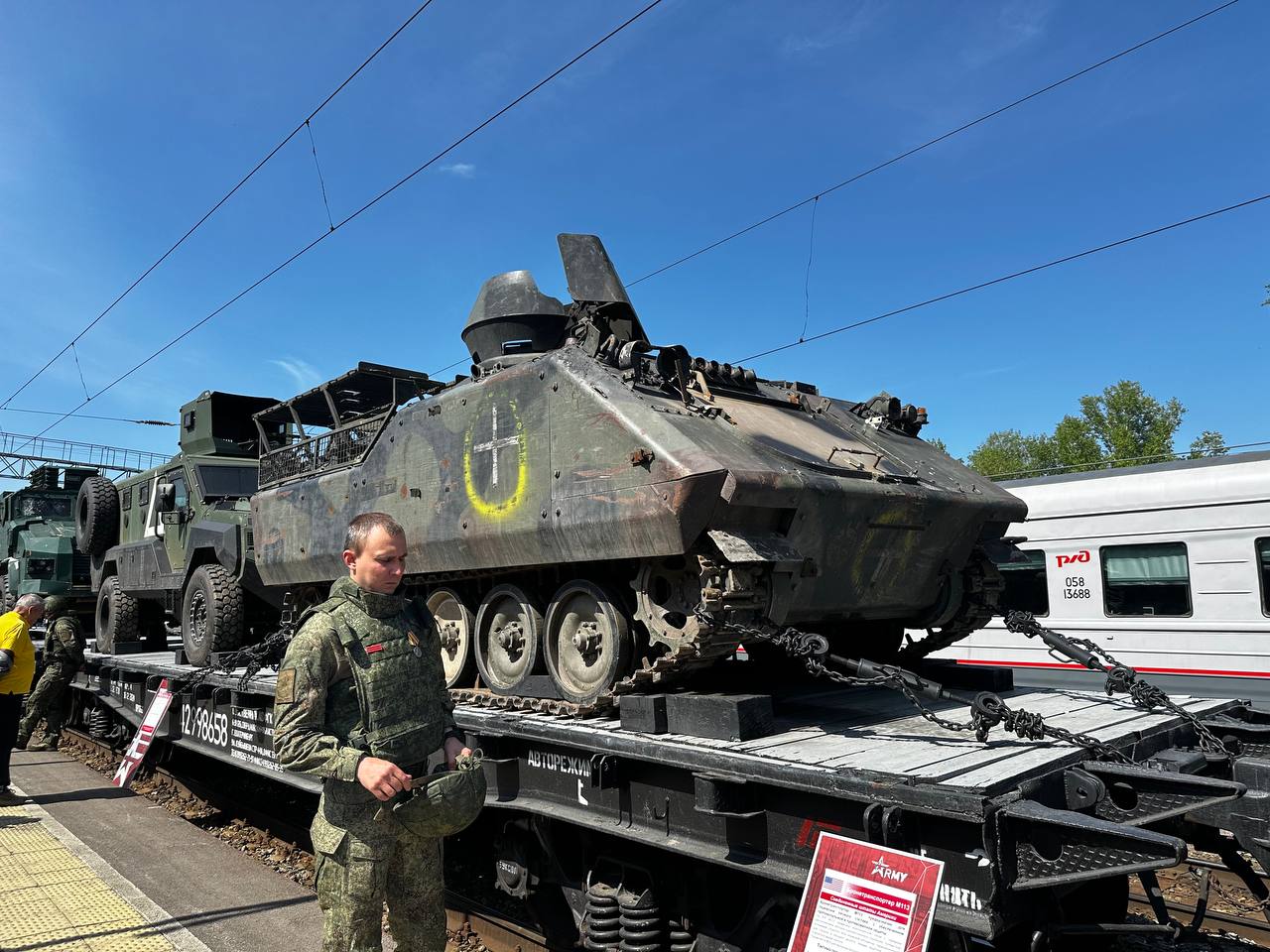 Воинский эшелон состоит из 19 вагонов, среди которых представлены 4 пассажирских вагона и 9 специализированных музейно-выставочных площадок. Экспозиция посвящена службе по контракту, деятельности Юнармии и празднованию 80-летия победы в Великой Отечественной войне.
