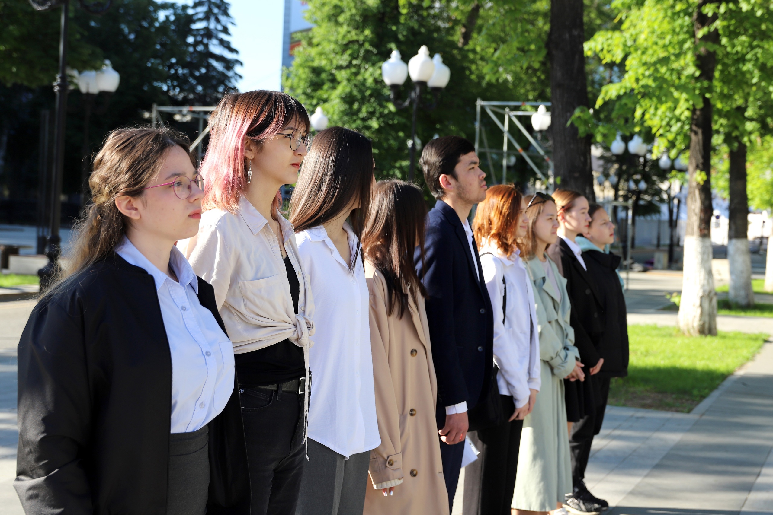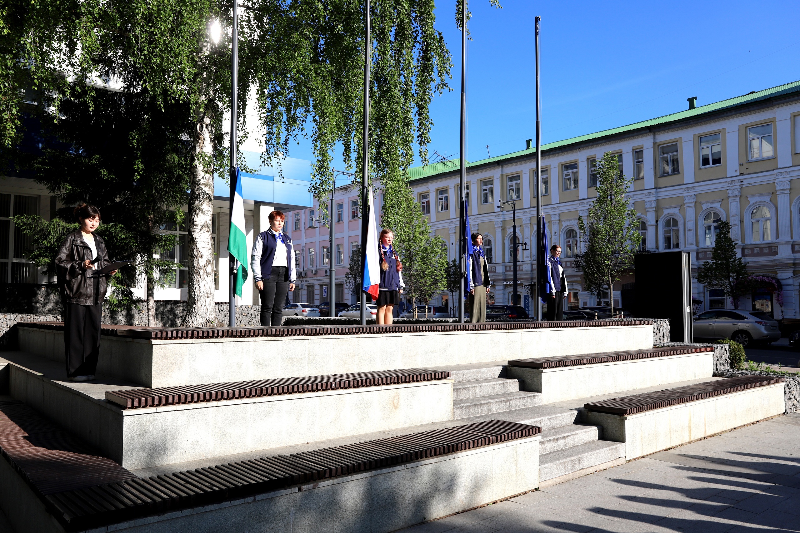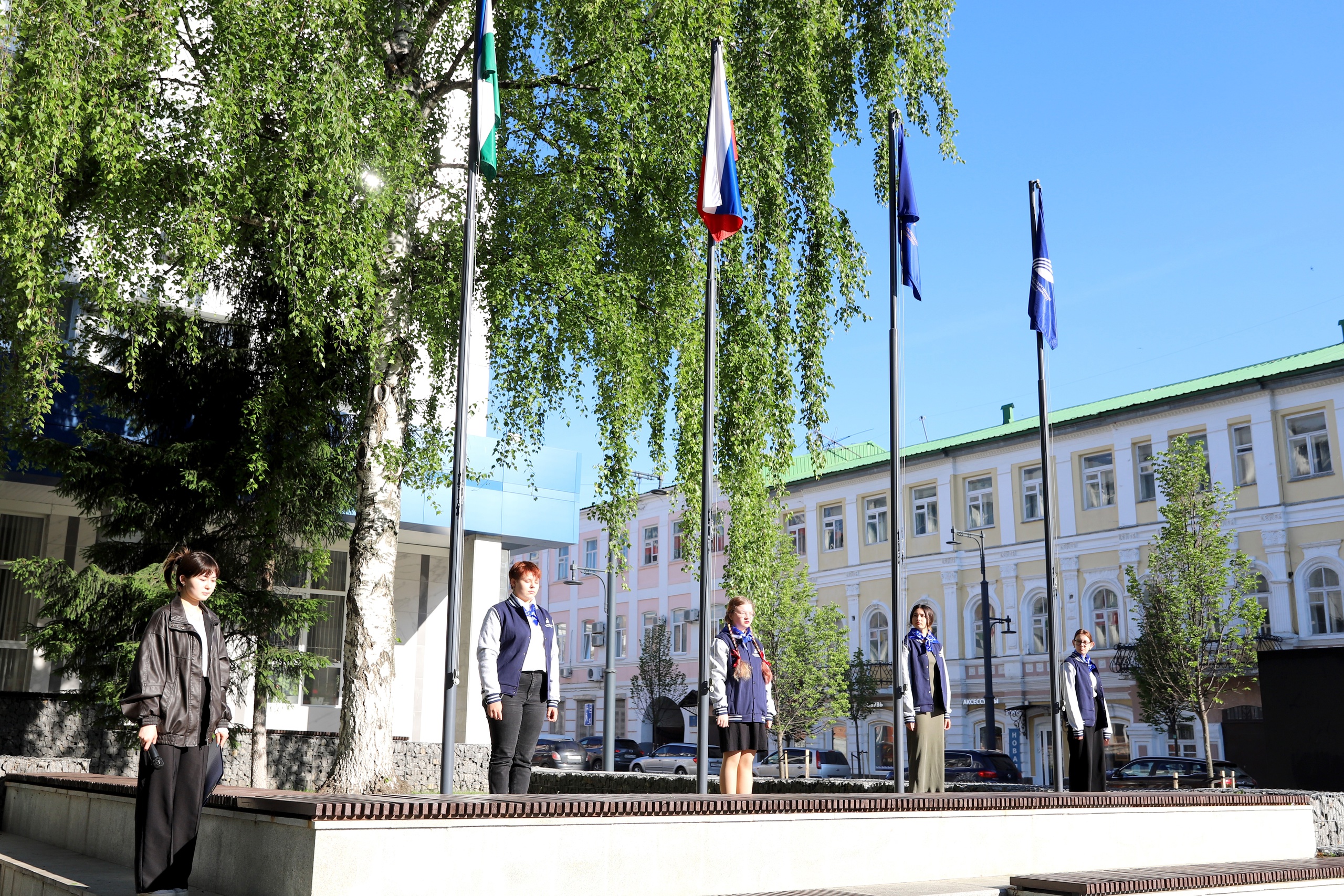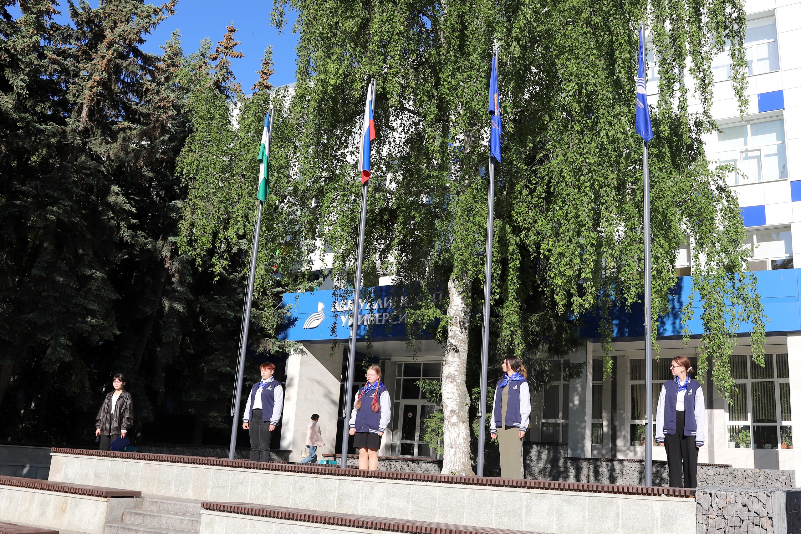 26 мая на площади перед Акмуллинским университетом состоялась еженедельная торжественная церемония поднятия государственных флагов Российской Федерации, Республики Башкортостан, флагов Министерства просвещения Российской Федерации и Акмуллинского университета.