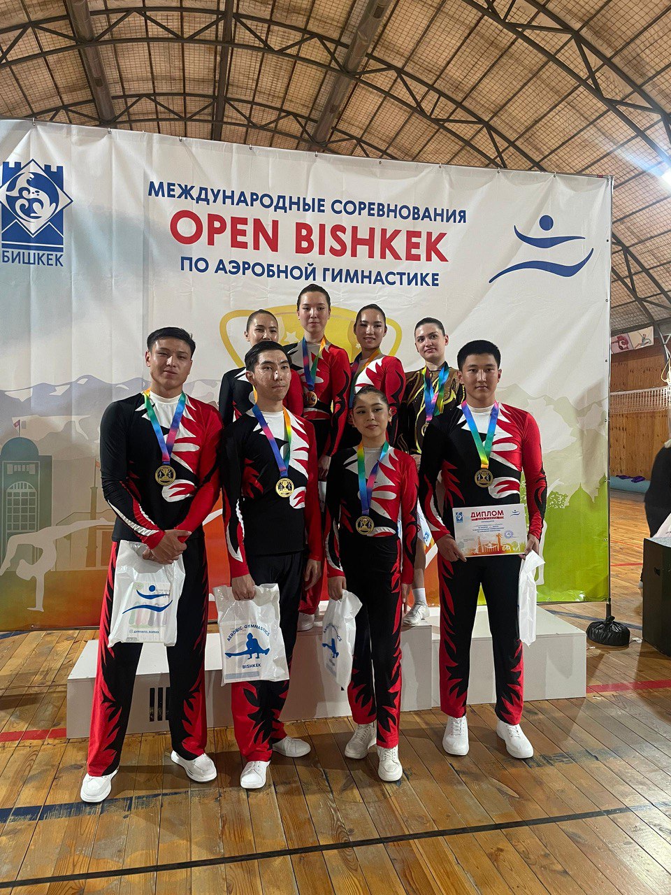 Коллектив БГПУ им. М.Акмуллы, состоящий из 8 ребят - граждан Киргизской Республики, выступал под названием «Взлёт». Команда уже демонстрировала свои умения с номинацией «Гимнастическая платформа 18+» в ноябре 2024 года в Москве и тогда завоевала бронзу, а к концу учебного года ребята, улучшив свои навыки, были удостоены уже 1-го места! Ребята выступили со степ-программой под мотивы национальной кыргызской мелодии «Мөлмөлүм». Также в Бишкек с командой и тренером приехали выступить две аэробистки из НК САШ «Страдл» - обучающиеся Акмуллинского университета Миронова Антонина и Глазырина Кристина. Обе девушки получили призовые места по программам соло - 1 и 2 место соответственно.
