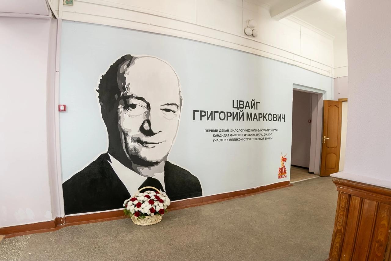 В год 80-летия Великой Победы в Акмуллинском университете в здании Института филологического образования и межкультурных коммуникаций открыли мурал, посвященный первому декану филологического факультета БГПИ Григорию Марковичу Цвайгу.
