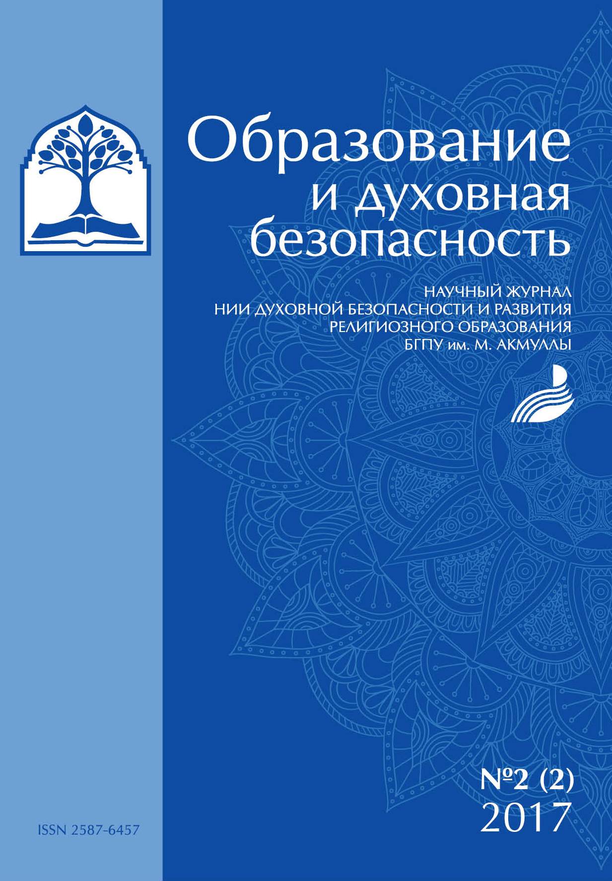 Вышел в свет второй номер научного журнала Научно-исследовательского института духовной безопасности и развития религиозного образования Башкирского государственного педагогического университета им. М. Акмуллы «Образование и духовная безопасность».
