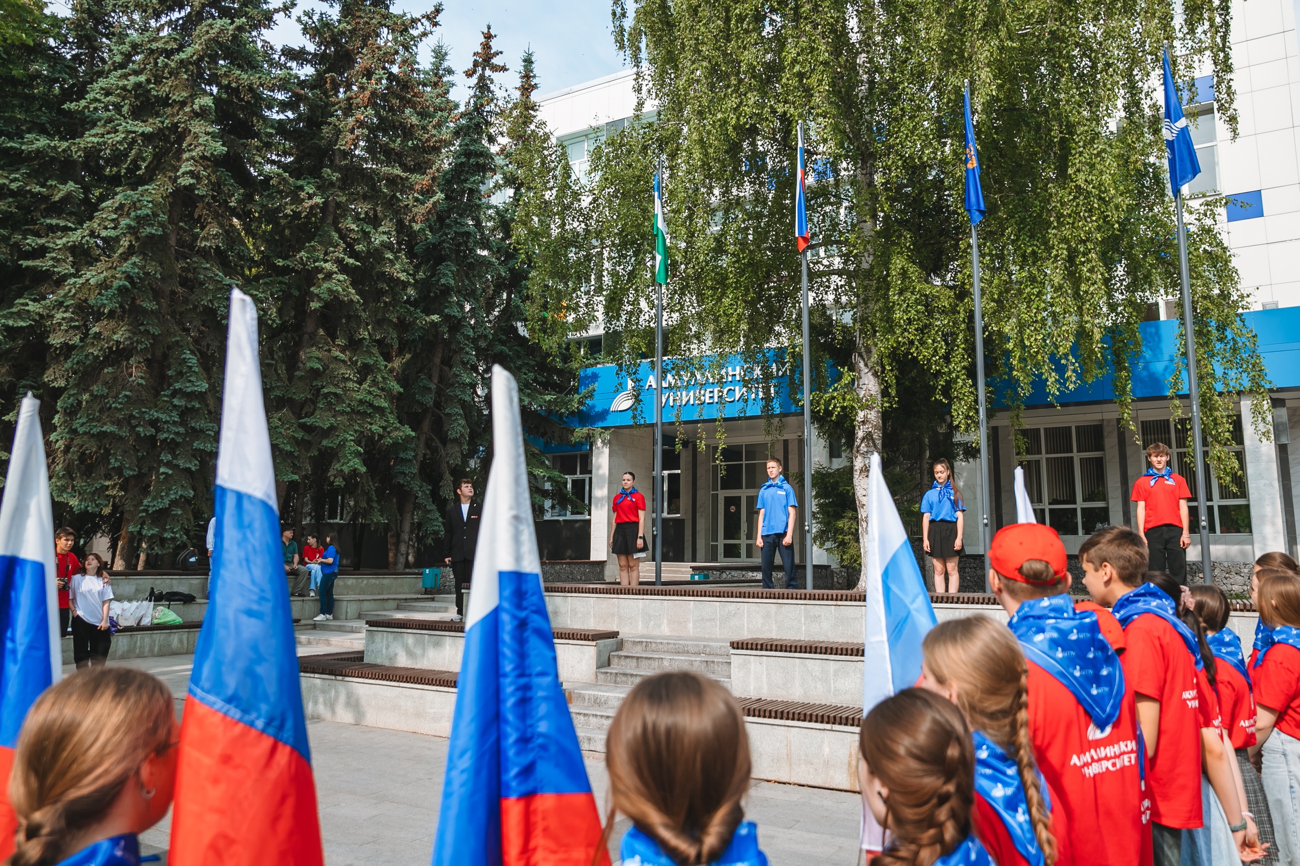 12 июня на площади перед Акмуллинским университетом состоялась торжественная церемония поднятия государственных флагов Российской Федерации, Республики Башкортостан, флагов Министерства просвещения Российской Федерации и Акмуллинского университета. Главными героями торжественного мероприятия стали школьники из Донецкой Народной Республики - участники образовательно-туристского проекта «Университетские смены». Этот день для ребят пройдет под знаком Дня России и Российского движения детей и молодежи «Движение Первых» (РДДМ).