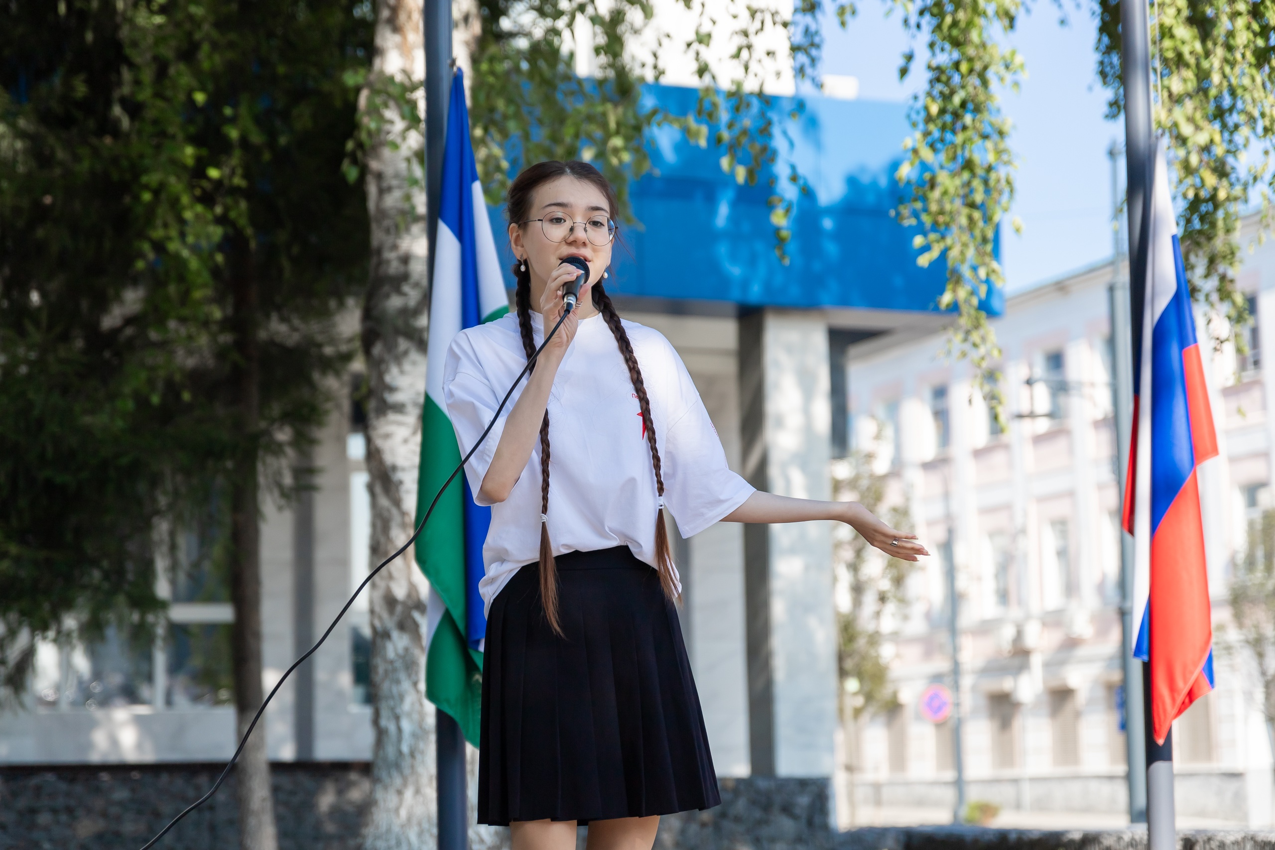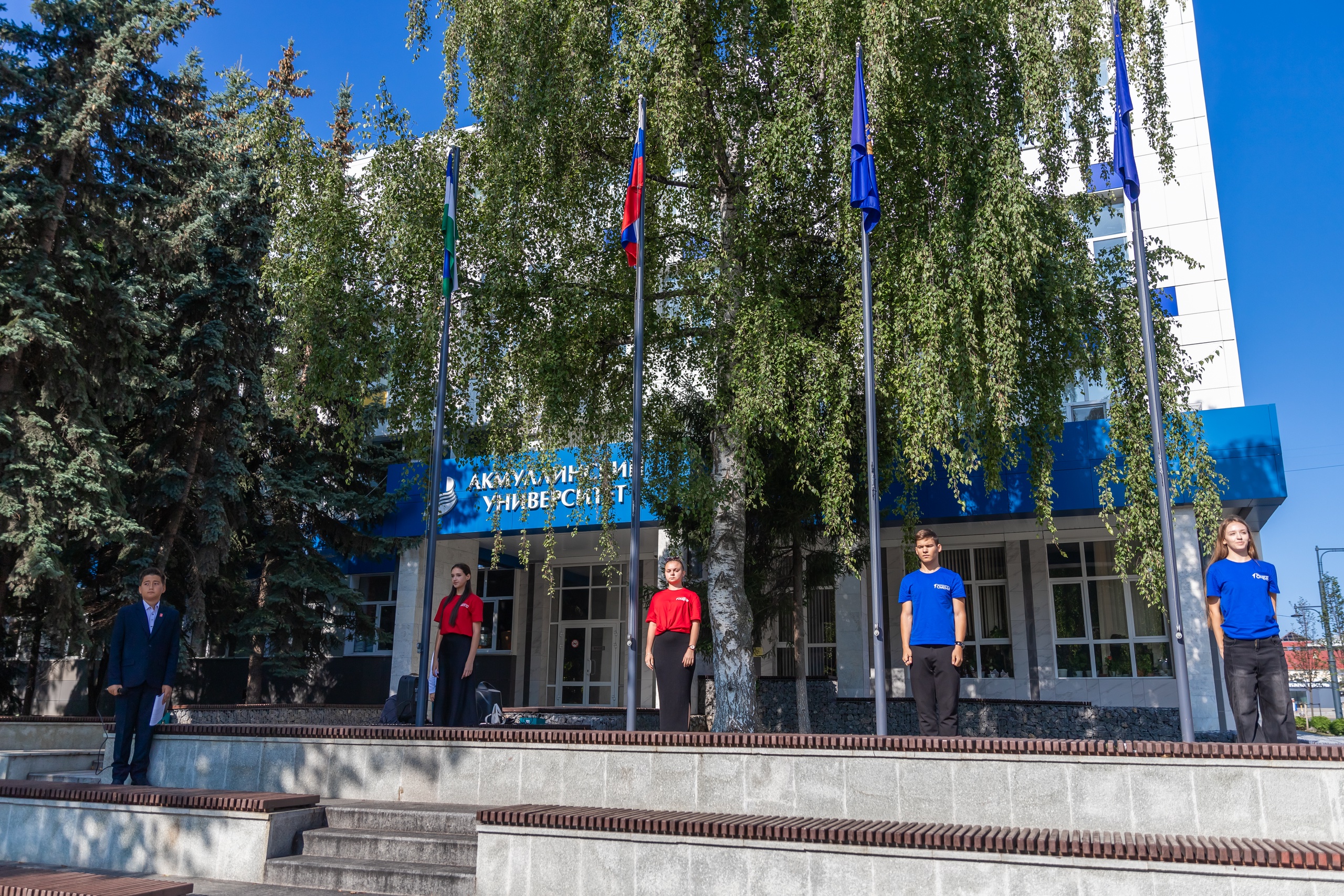 Начался день с торжественной церемонии поднятия государственных флагов Российской Федерации, Республики Башкортостан, флагов Министерства просвещения Российской Федерации и Акмуллинского университета и звучания гимнов. Почетное право поднять флаги на площади перед вузом получили участники смены Милена Чабанова, Данил Кокош, София Сляднева и Анна Стоянова. Музыкальным украшением церемонии стало выступление активистки «Движения Первых», лауреата всероссийских и международных конкурсов Яны Яковской, подарившее всем отличное настроение.