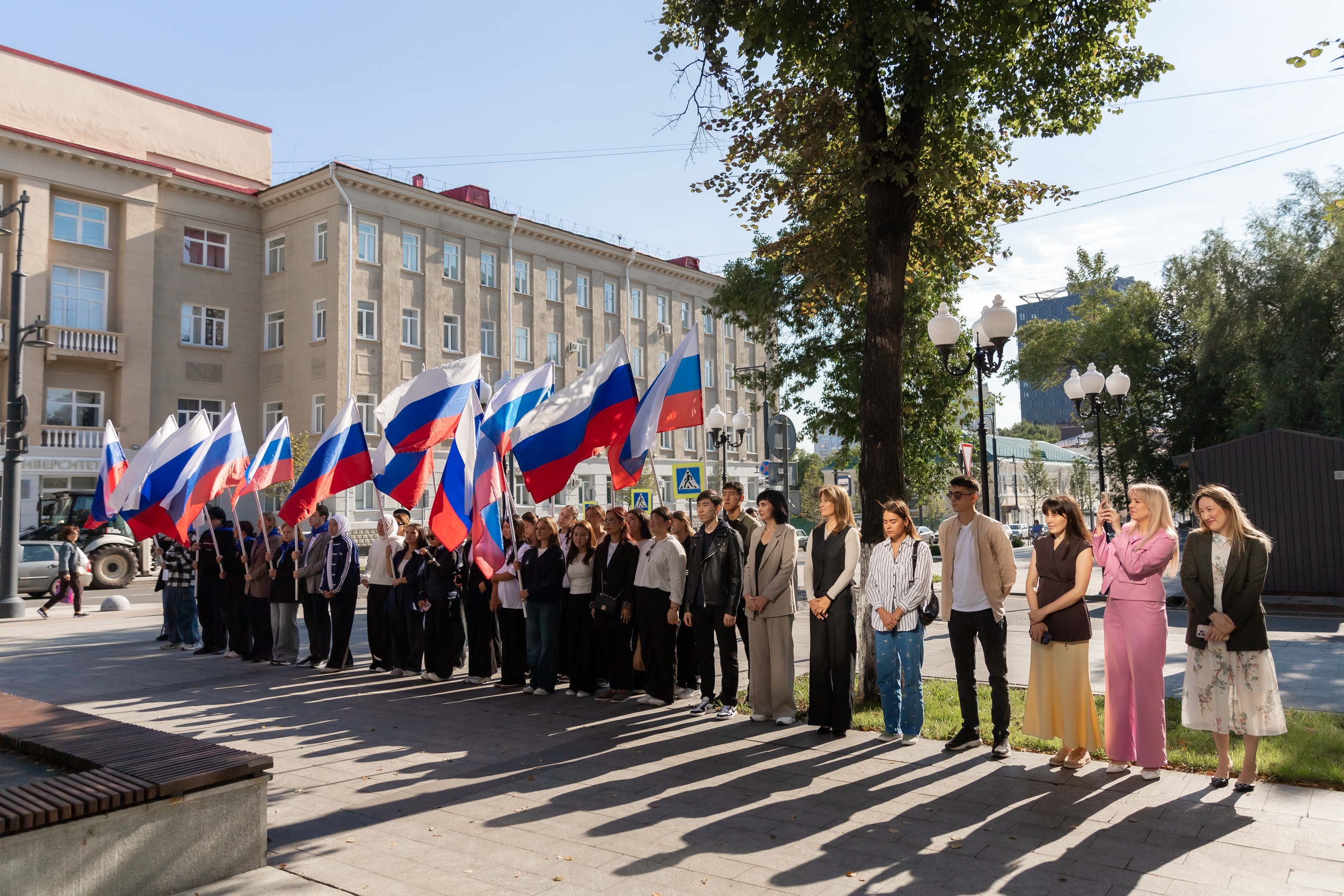 Почетное право поднять флаги на площади перед университетом в праздничный день получили студенты Института исторического, правового и социально-гуманитарного образования: