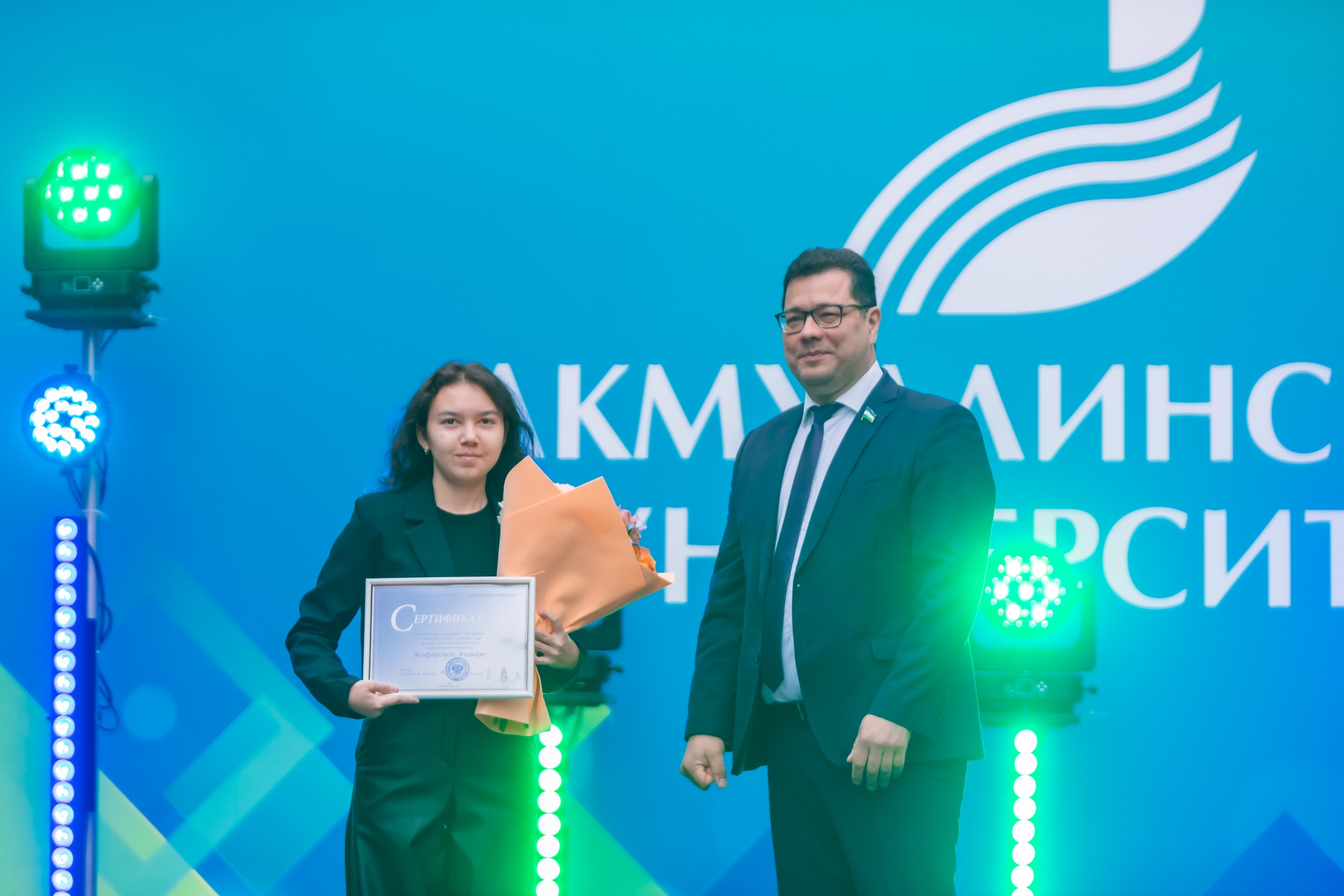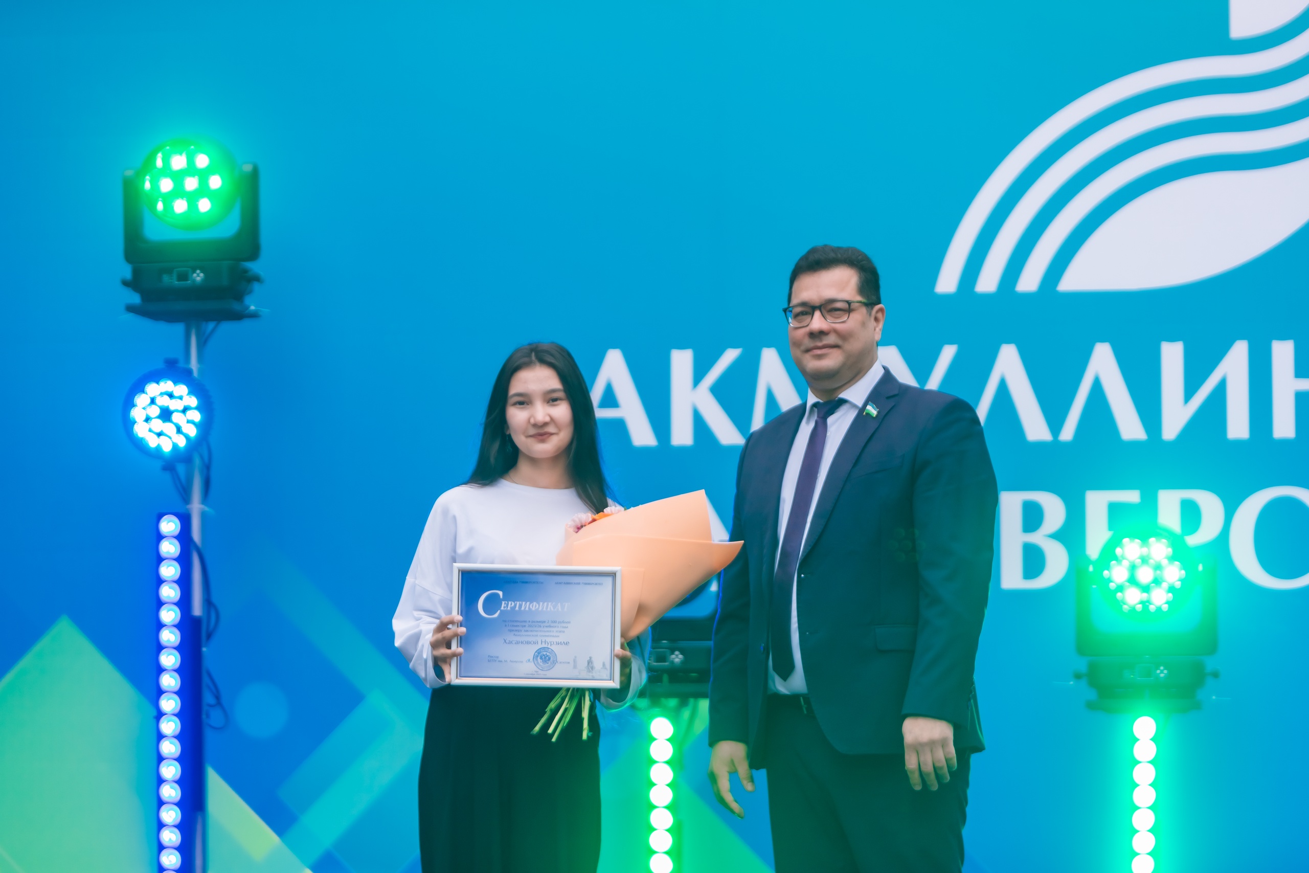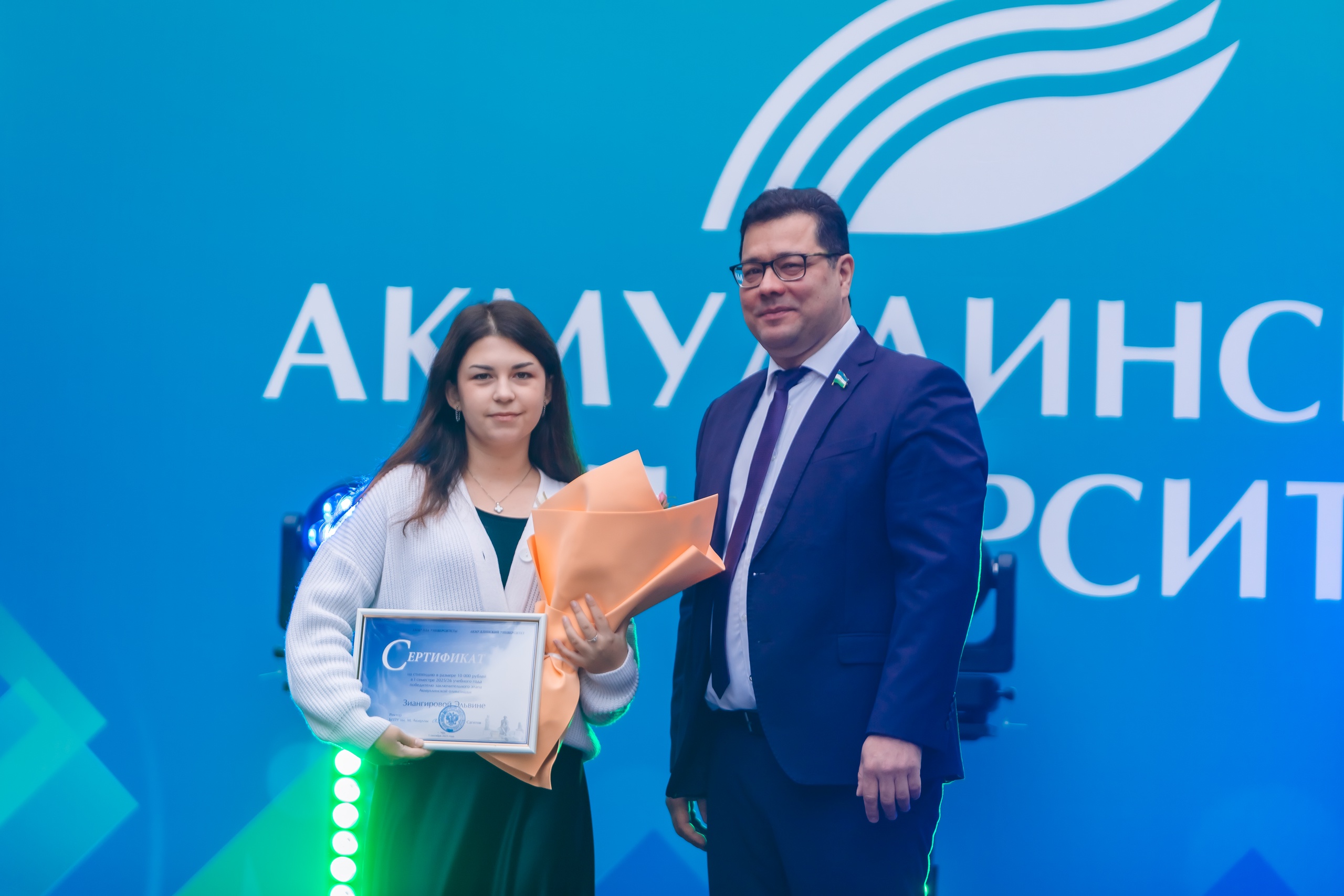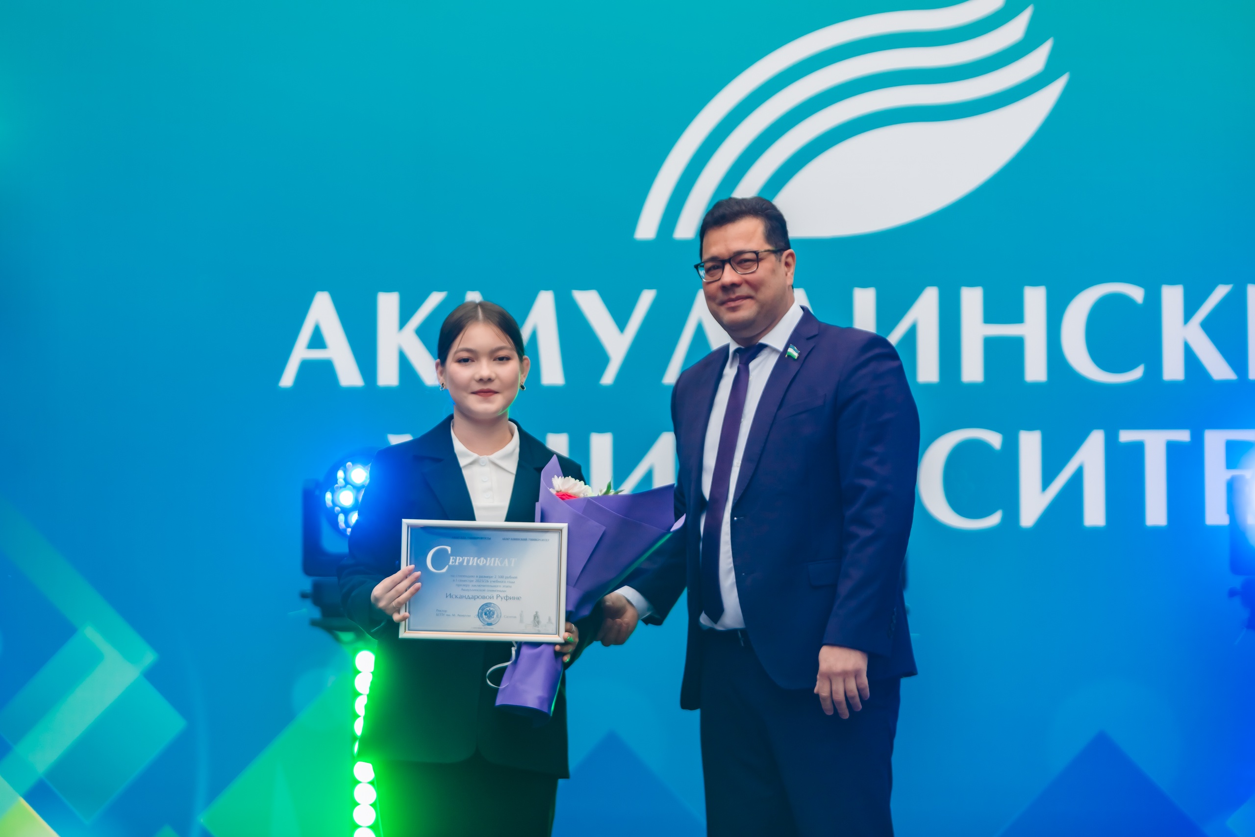 На торжественном мероприятии, посвященном Дню знаний и началу учебного года, ректор БГПУ им. М. Акмуллы Салават Сагитов вручил лучшим первокурсникам 2025 года сертификаты на получение повышенной стипендии в течение 1 года обучения.