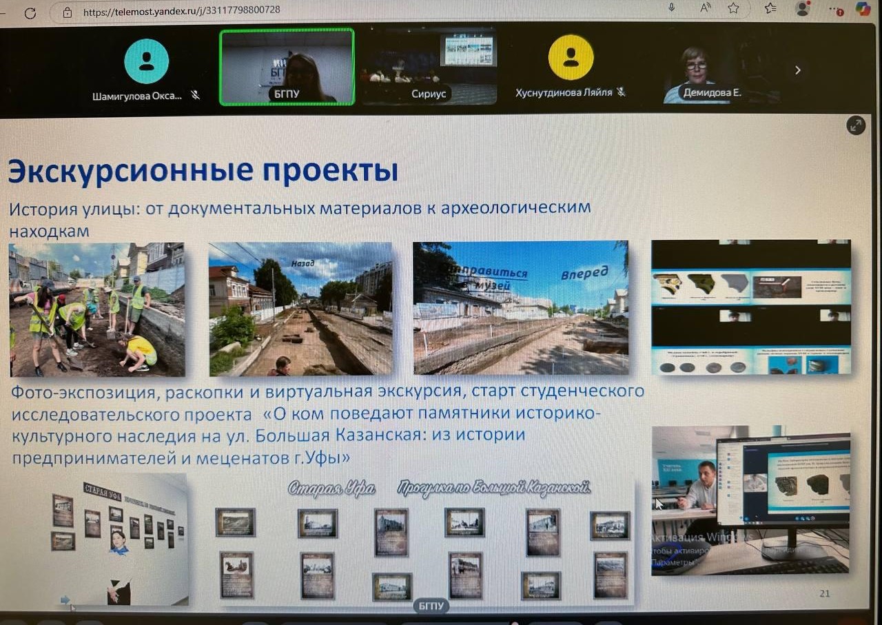 Опыт Башкирского государственного педагогического университета им.М.Акмуллы в реализации проектной, научно-исследовательской работы студентов, направленной на развитие технологий исторического просвещения, представила директор Института исторического, правового и социально-гуманитарного образования Оксана Шамигулова. В своем докладе она  обратила внимание на роль исторической  персоналистики в сохранении исторической памяти, уделила особое внимание системе подготовки будущих учителей истории и обществознания к решению задач воспитания историей, овладению студентами современными технологиями гуманитарного образования и цифровыми инструментами, познакомила с некоторыми результатами студенческих исследовательских работ.
