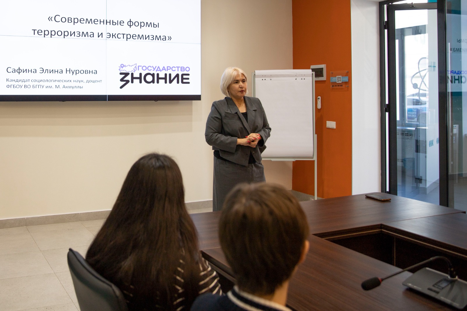 После выдачи удостоверений старший научный сотрудник Координационного центра по противодействию идеологии терроризма и экстремизма, доцент кафедры охраны здоровья и безопасности жизнедеятельности Сафина Элина провела познавательную лекцию для гостей и студентов.