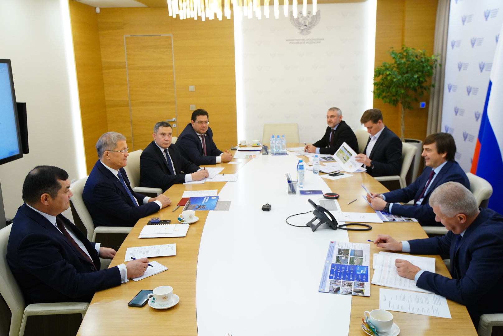 Далее Сергей Кравцов и Радий Хабиров продолжили обсуждение в формате рабочего совещания. В нём приняли участие заместители министра просвещения России, члены Правительства Башкортостана министр просвещения Башкортостана Ильдар Мавлетбердин, ректор БГПУ имени М. Акмуллы Салават Сагитов. .