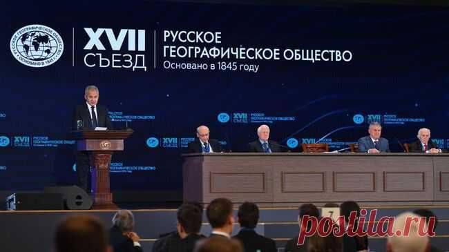 Делегаты съезда избрали Сергея Шойгу президентом РГО на новый срок. В своём выступлении он анонсировал новые проекты, включая воссоздание утраченной карты времён Бориса Годунова и поиск «идеальных земель» для расселения в регионах России.