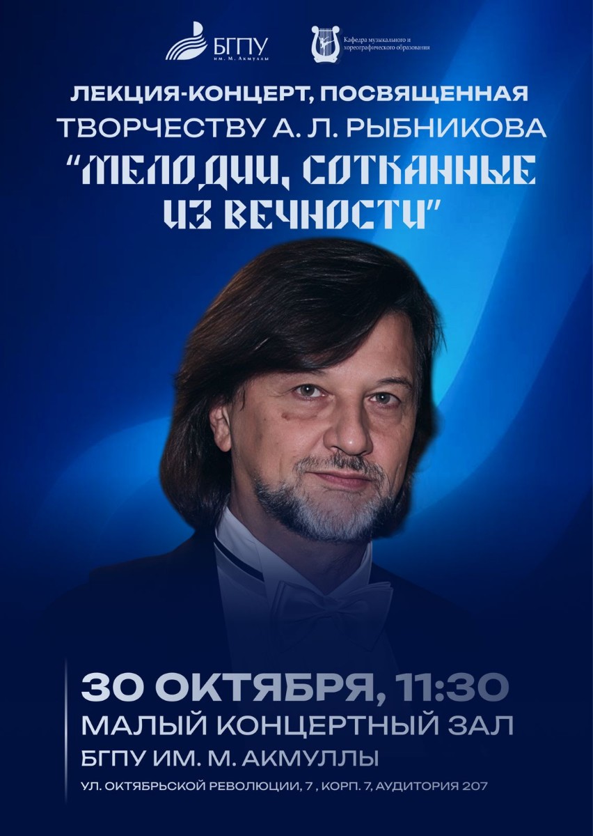 Ждем Вас 30 октября 2025 года в 11:30 ч. в Малом концертном зале БГПУ им. М. Акмуллы (учебный корпус №7, ауд. 207, ул. Октябрьской революции, д. 7)