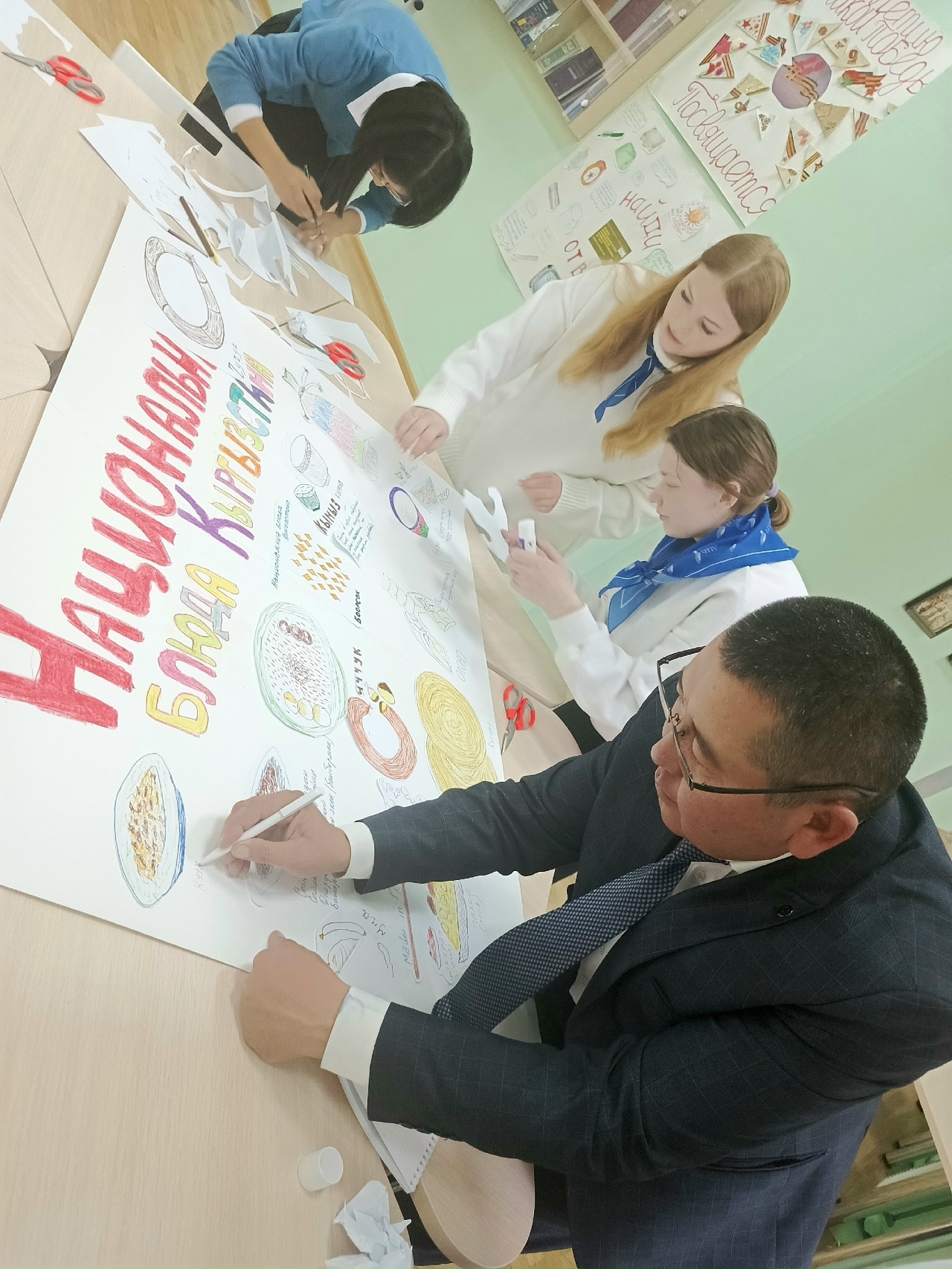 Итогом обучения стал творческий проект — красочный коллаж «Национальные блюда Кыргызстана», который педагоги с искренним теплом создали своими руками, поделившись частичкой своей культуры. Помогали в этом путешествии студенты-волонтеры отряда «Палитра», заряжая всех своей энергией. Вовлеченность волонтеров создала по-настоящему дружескую атмосферу.