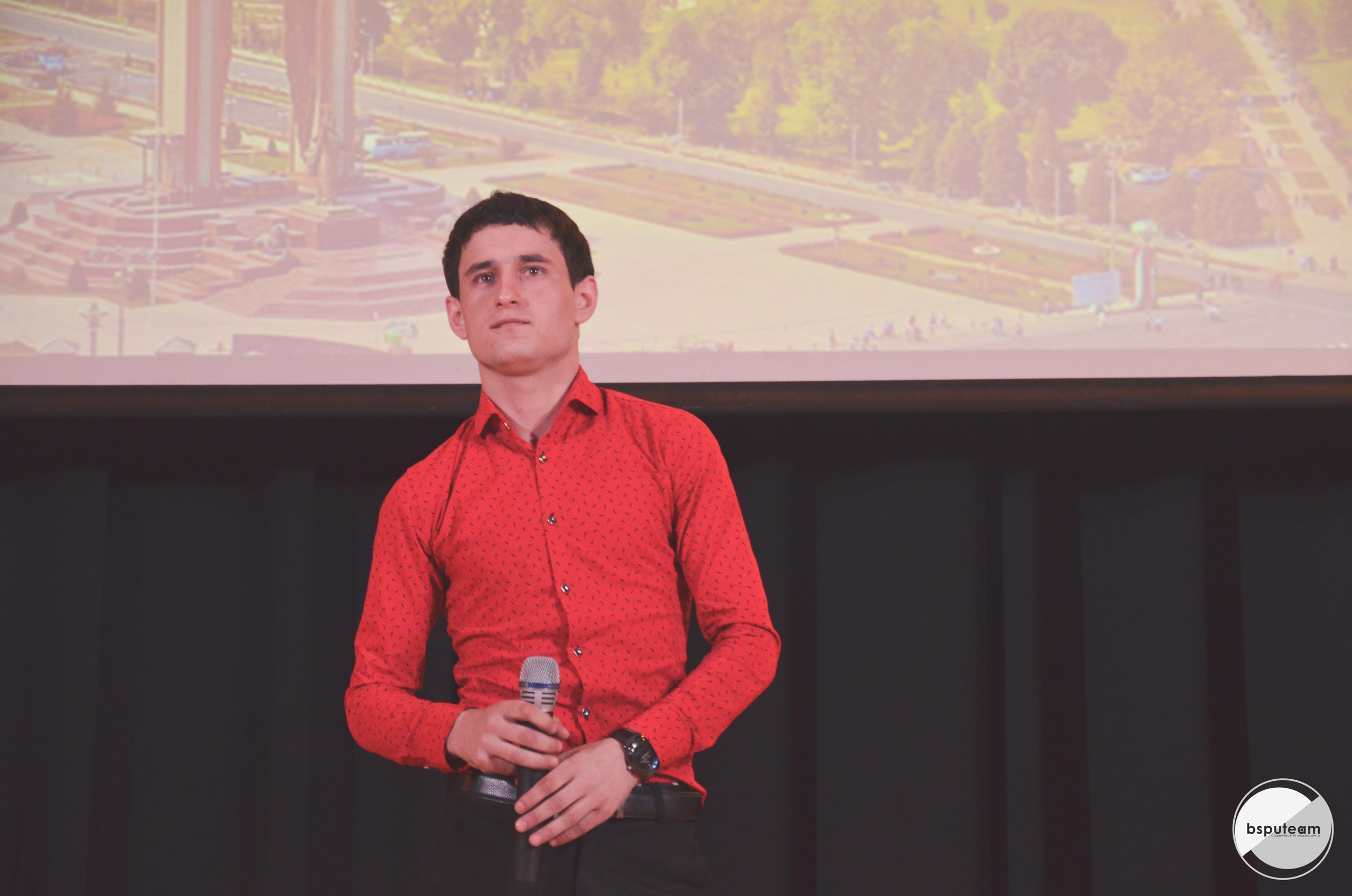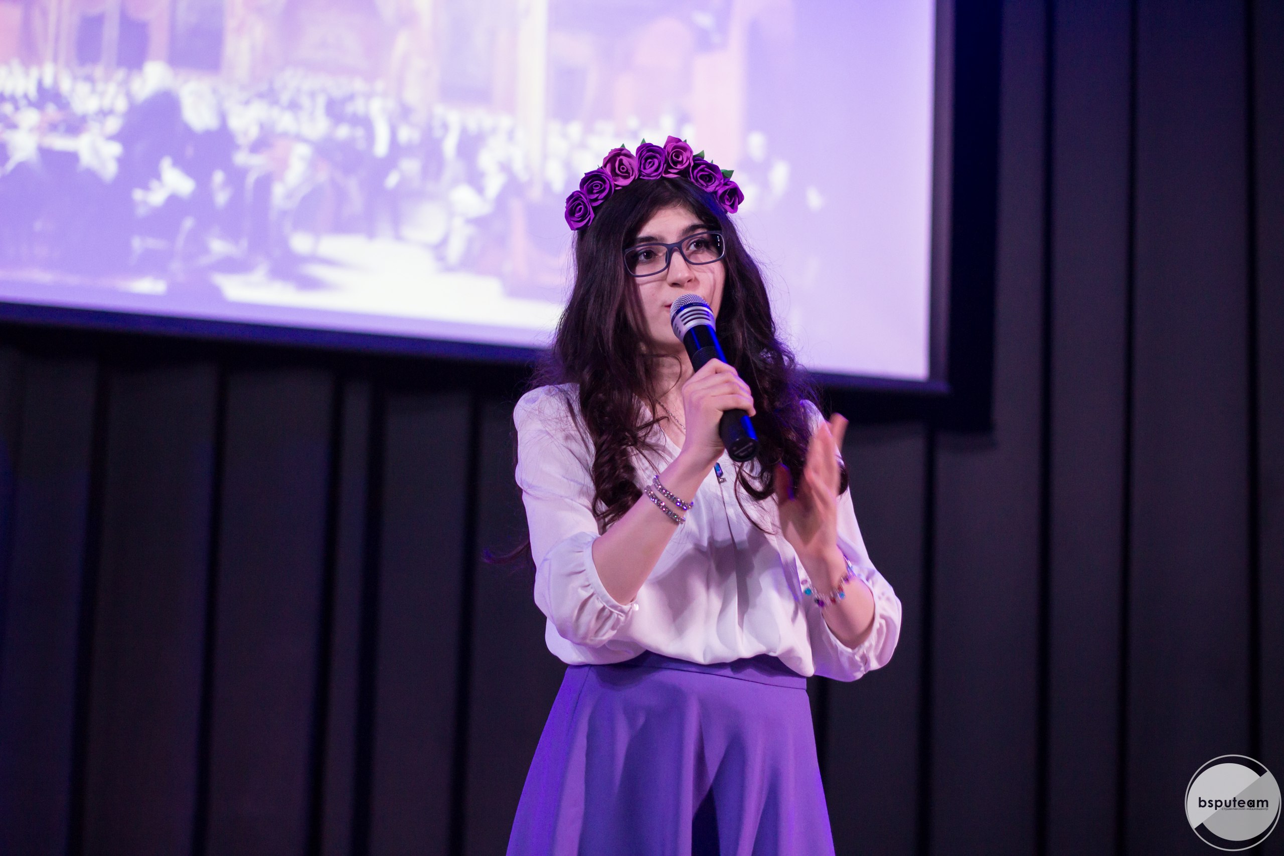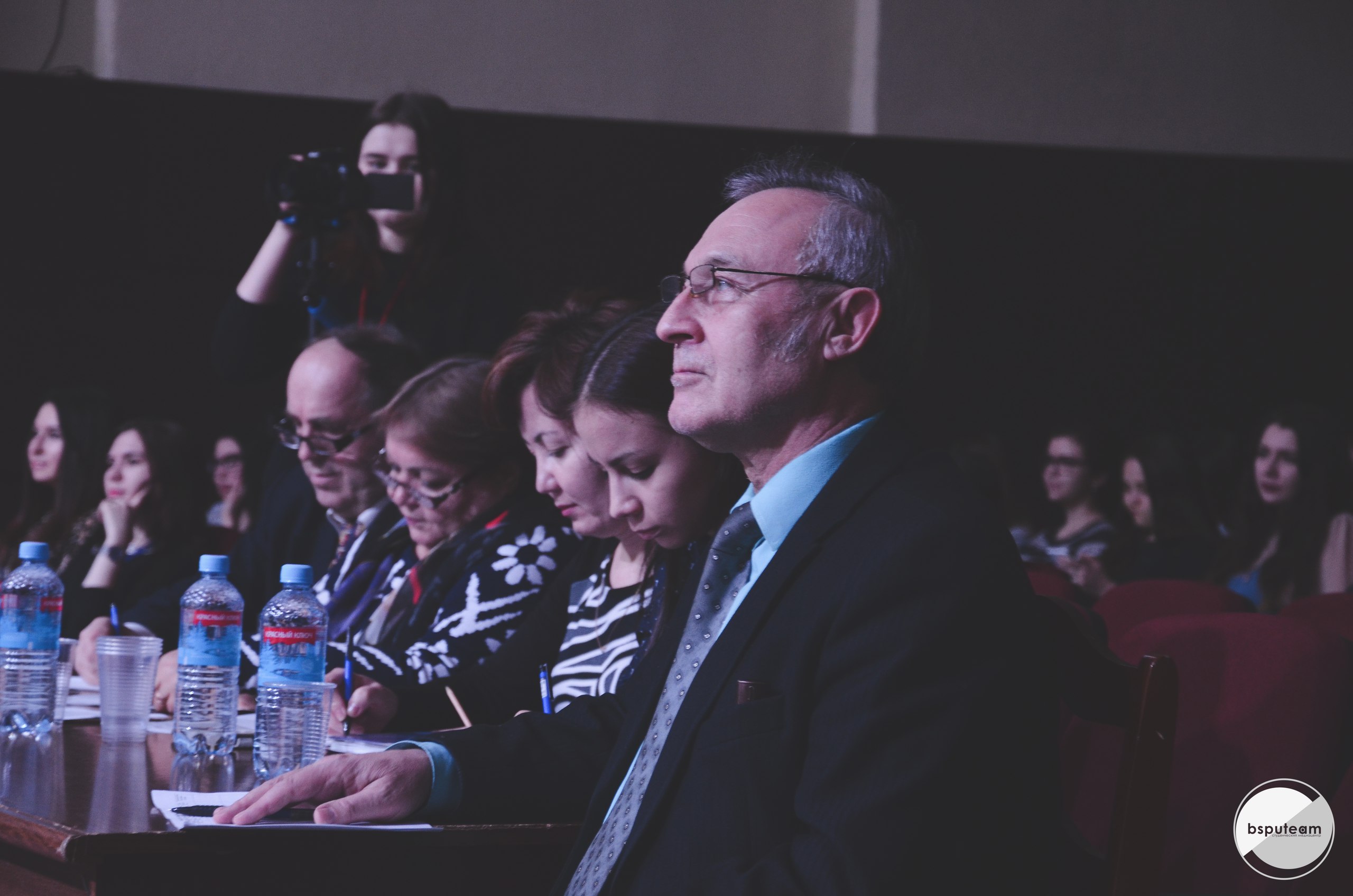 В актовом зале был аншлаг,  300 человек.