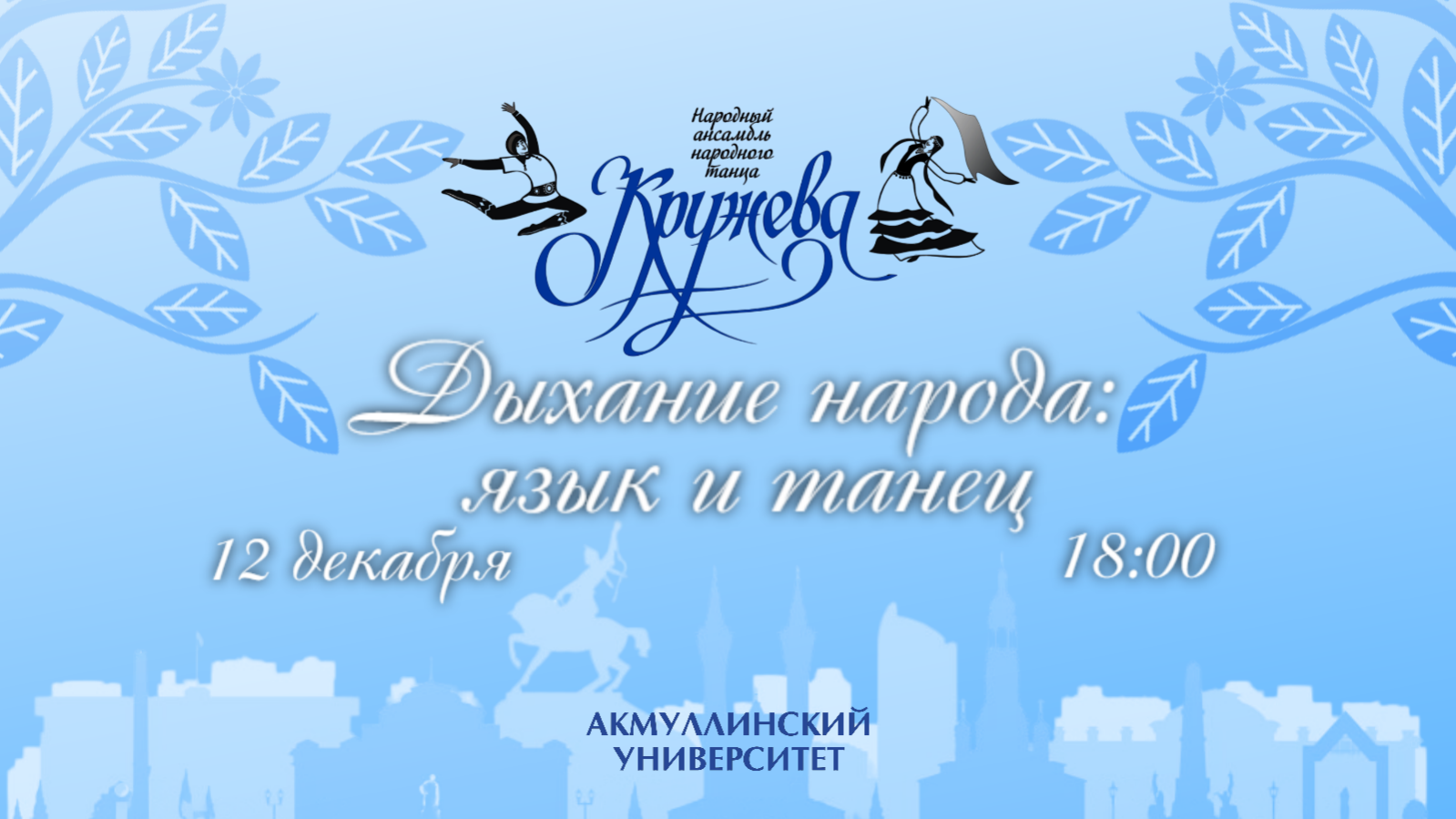 12 декабря в БГПУ им. М. Акмуллы  пройдет концерт Народного ансамбля народного танца «Кружева» под названием «Дыхание народа: язык и танец». Он посвящен Дню конституции России и Дню башкирского языка.