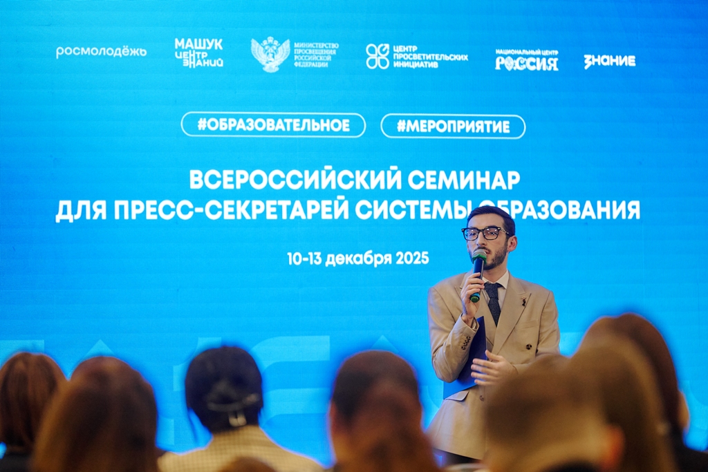 С 10 по 13 декабря 2025 года в Москве проходит Всероссийский семинар для пресс-секретарей системы образования. Организаторами выступают Минпросвещения России, Центр просветительских инициатив Министерства просвещения РФ и Центр знаний «Машук». Участие в мероприятии принимают более 150 специалистов по информационному сопровождению со всей страны.