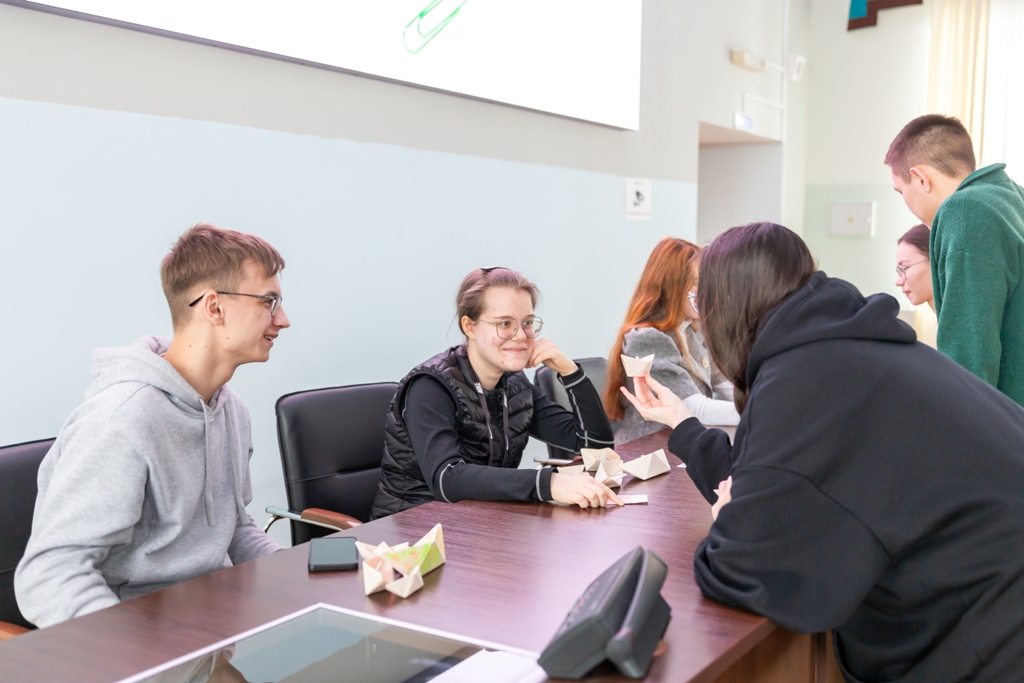 Руководитель проектов Сбер, общественный представитель Агентства стратегических инициатив Айгуль Хабибрахманова провела для студентов деловую игру «Море возможностей». Ребята смогли попробовать себя в роли предпринимателей, организовав игровые предприятия и взаимодействуя с покупателями и конкурентами.