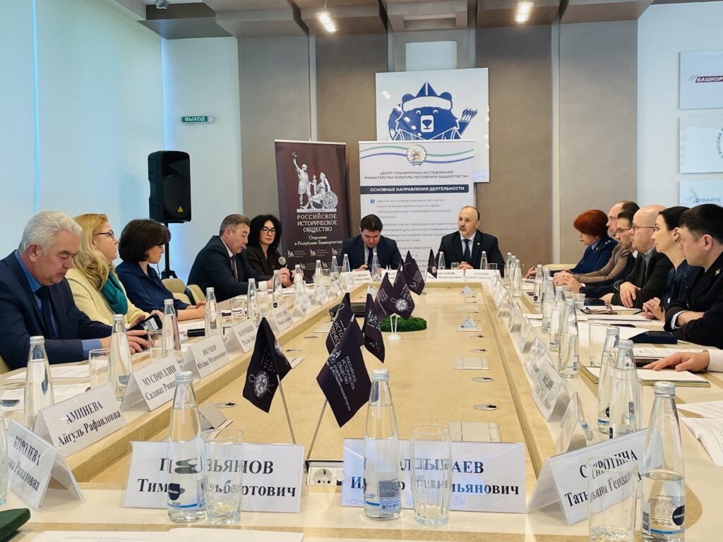 В своем приветствии председатель Правления Российского исторического общества, исполнительный директор фонда «История Отечества» Руслан Гагкуев подчеркнул, что единение народов России и сегодня служит нам опорой в защите суверенитета общей родины. Директор Центра гуманитарных исследований Минкультуры РБ, председатель Совета отделения Российского исторического общества в Республике Башкортостан Марат Марданов представил проект Концепции государственной национальной политики в Республике Башкортостан.