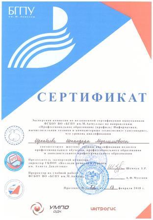 В результате выполнения в нашем Институте инновационной образовательной программы разрабатывается методология, структура и схема сертификации при общественно-профессиональной организации Совет директоров учреждений СПО РБ.
