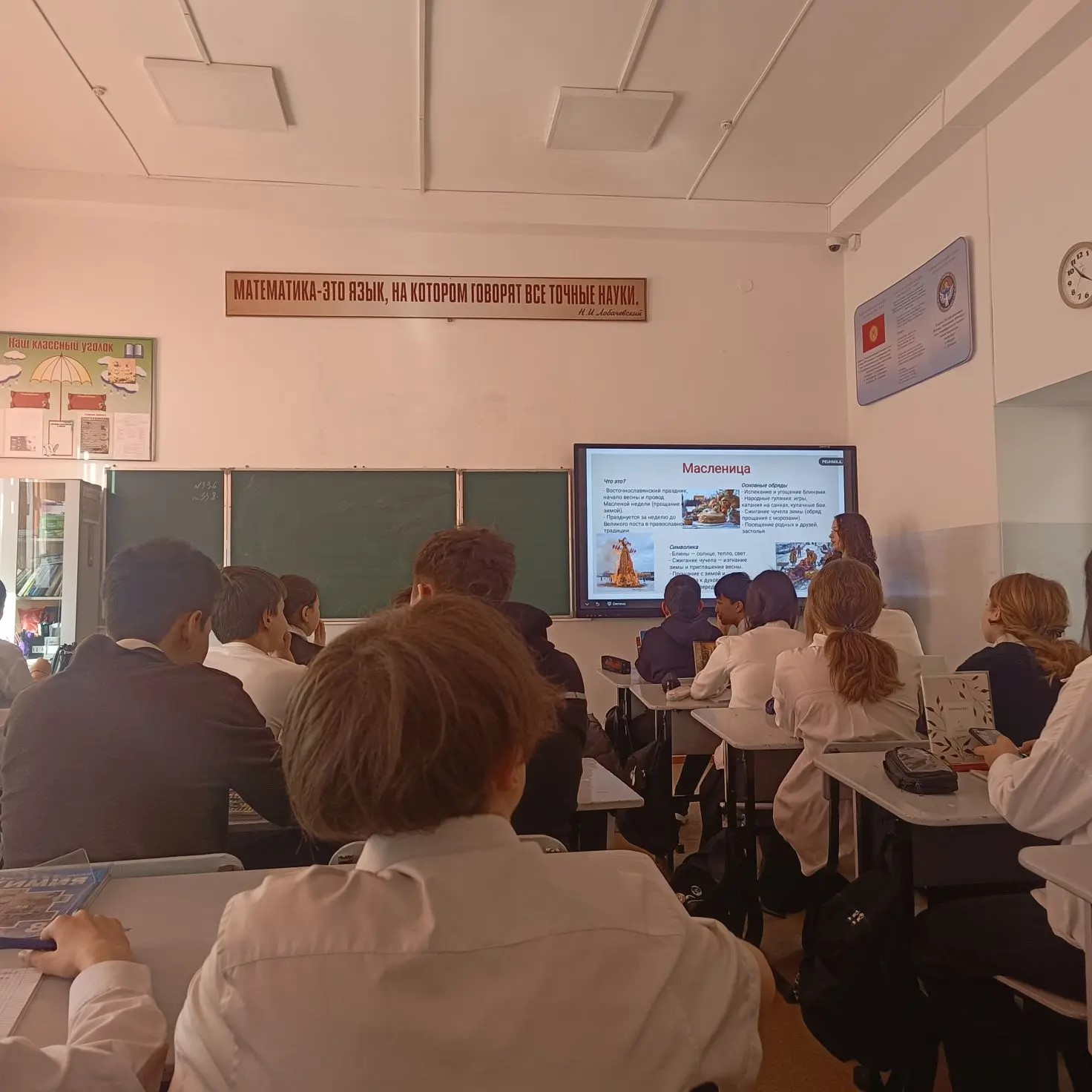 Валерия Фомина в школе №33 им. К. Токаева г. Бишкек провела с учениками 8А класса мероприятие «Масленица и Нооруз: праздники весны», который позволил ученикам лучше узнать традиции народов.