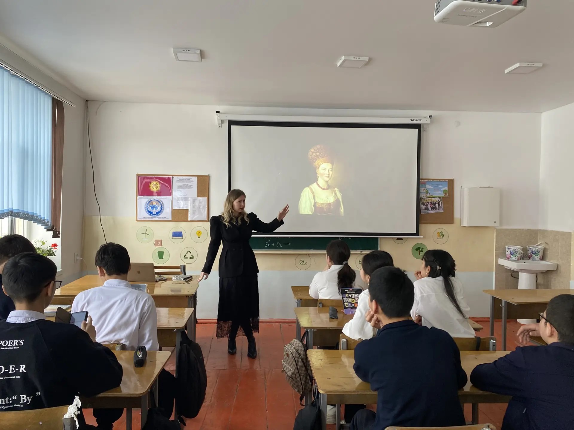 В преддверии Международного дня родного языка Азалия Алимгафарова провела внеурочные мероприятия с учениками 9Г класса школы №3 им. М. В. Ломоносова г. Ош.