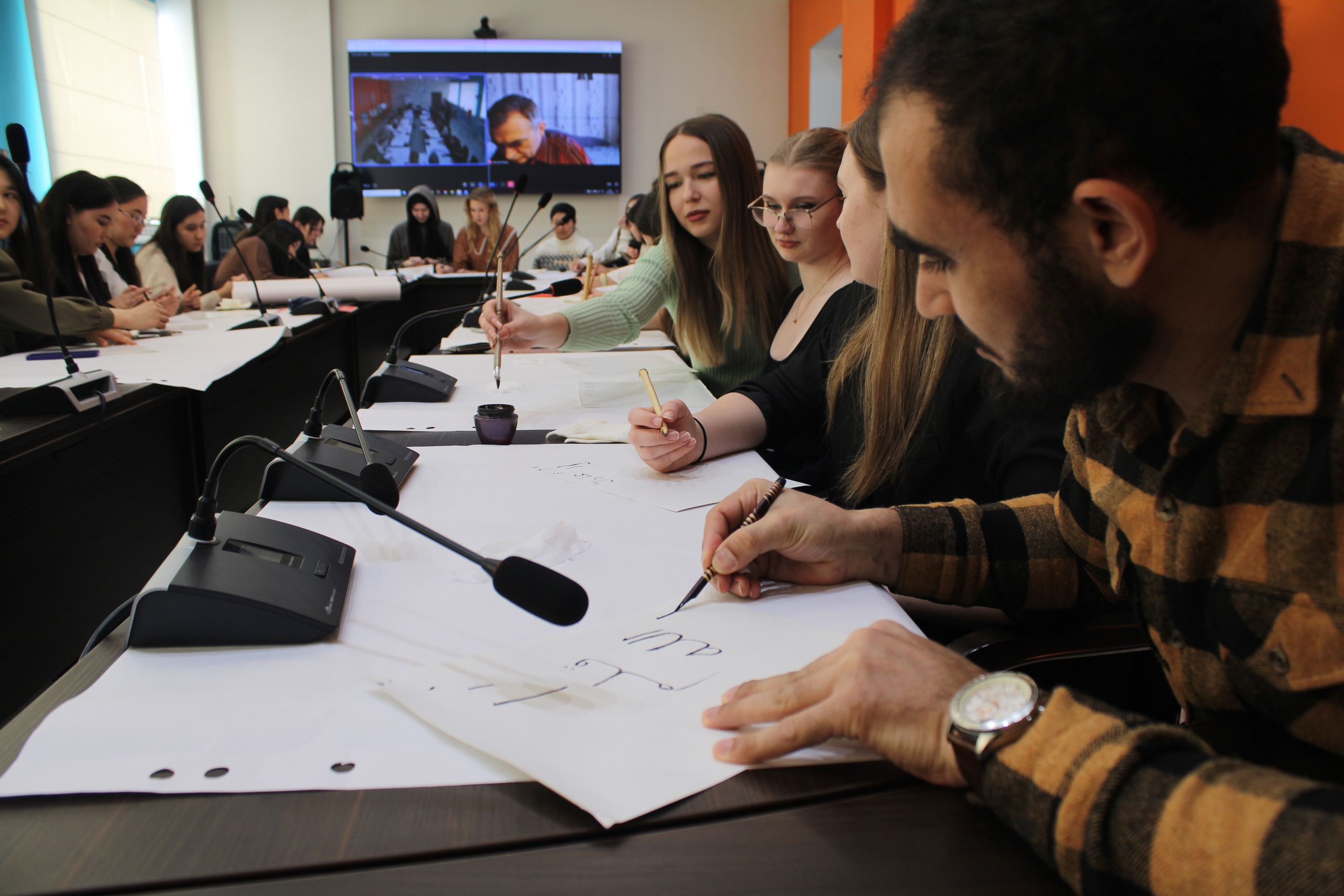 После официальной части праздник продолжил выпускник Акмуллинского университета, каллиграф Айдар Гареев, который провёл творческий мастер-класс по каллиграфии, где каждый участник встречи смог вывести свой первый иероглиф.