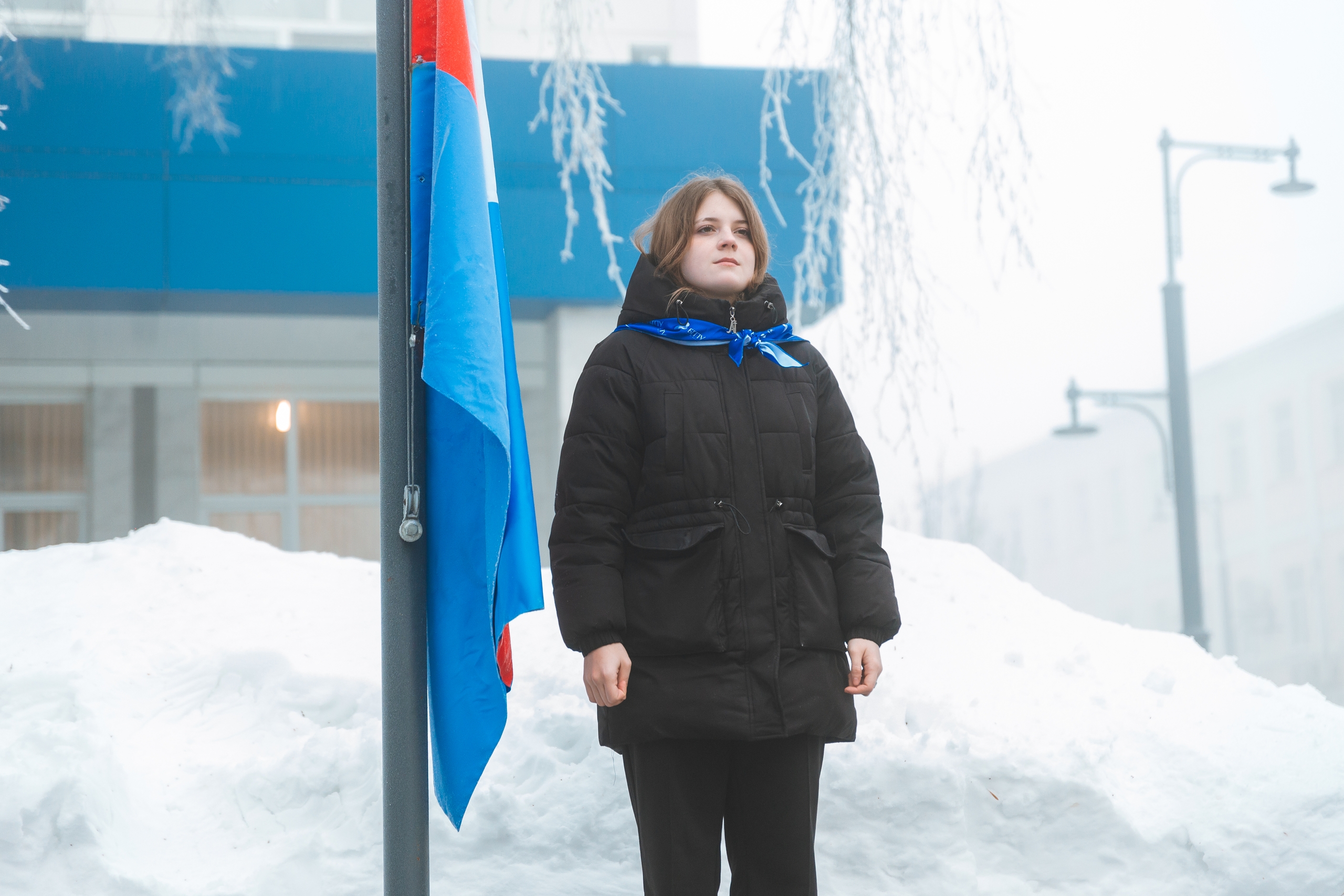 Почетное право поднять флаги на площади перед вузом было предоставлено студентам, имеющим особые достижения в общественной, спортивной и учебной деятельности:
