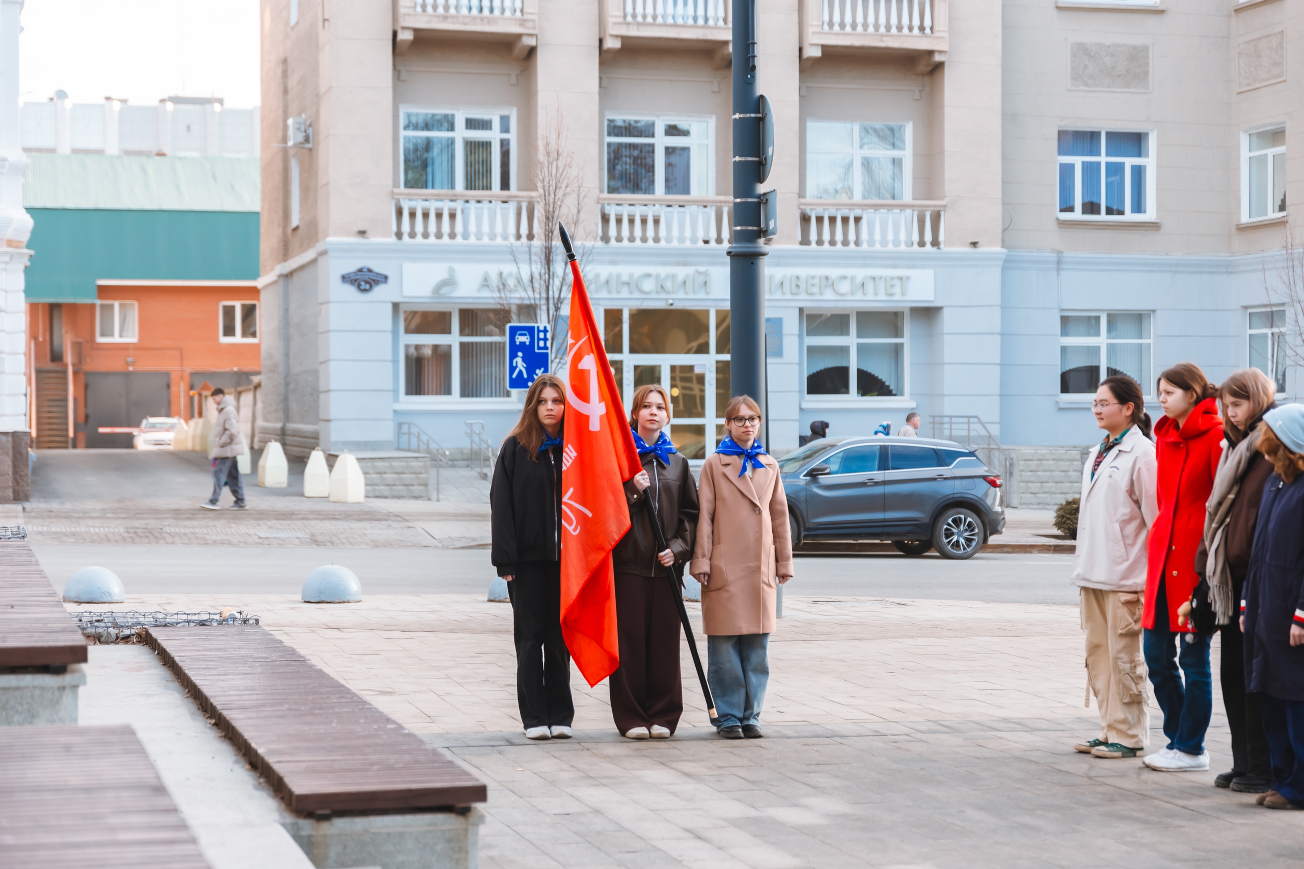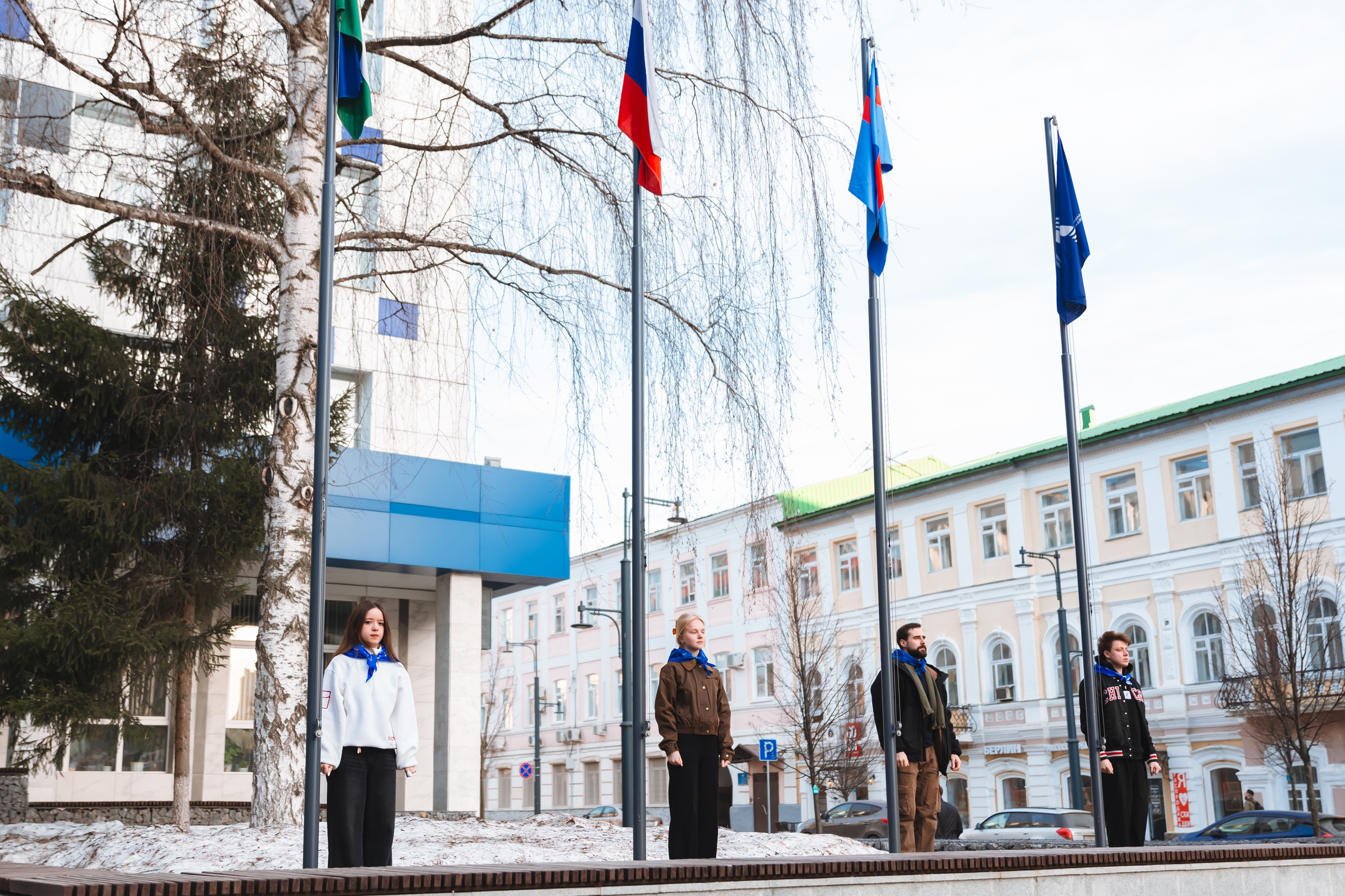Студенты ХГФ подняли флаги перед Акмуллинским университетом