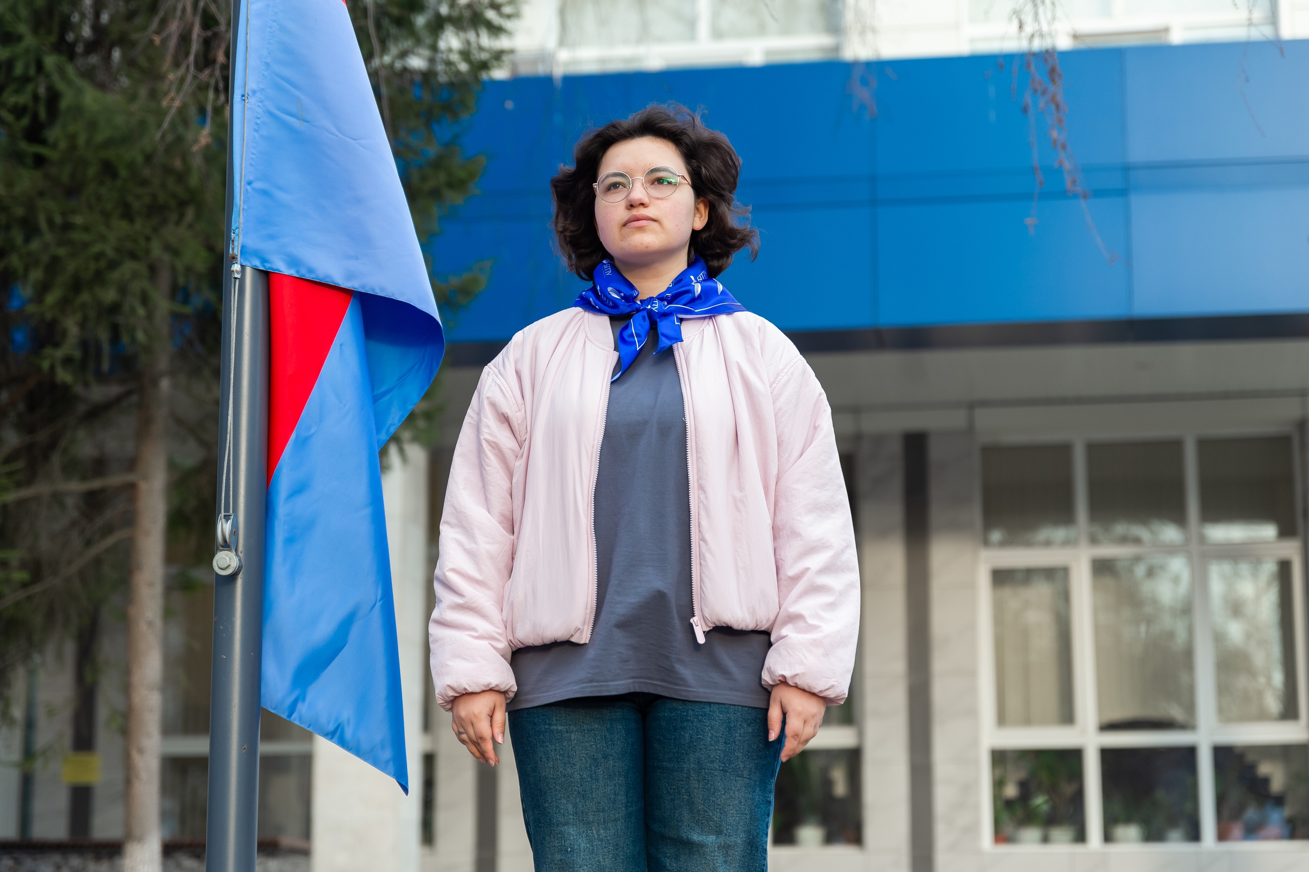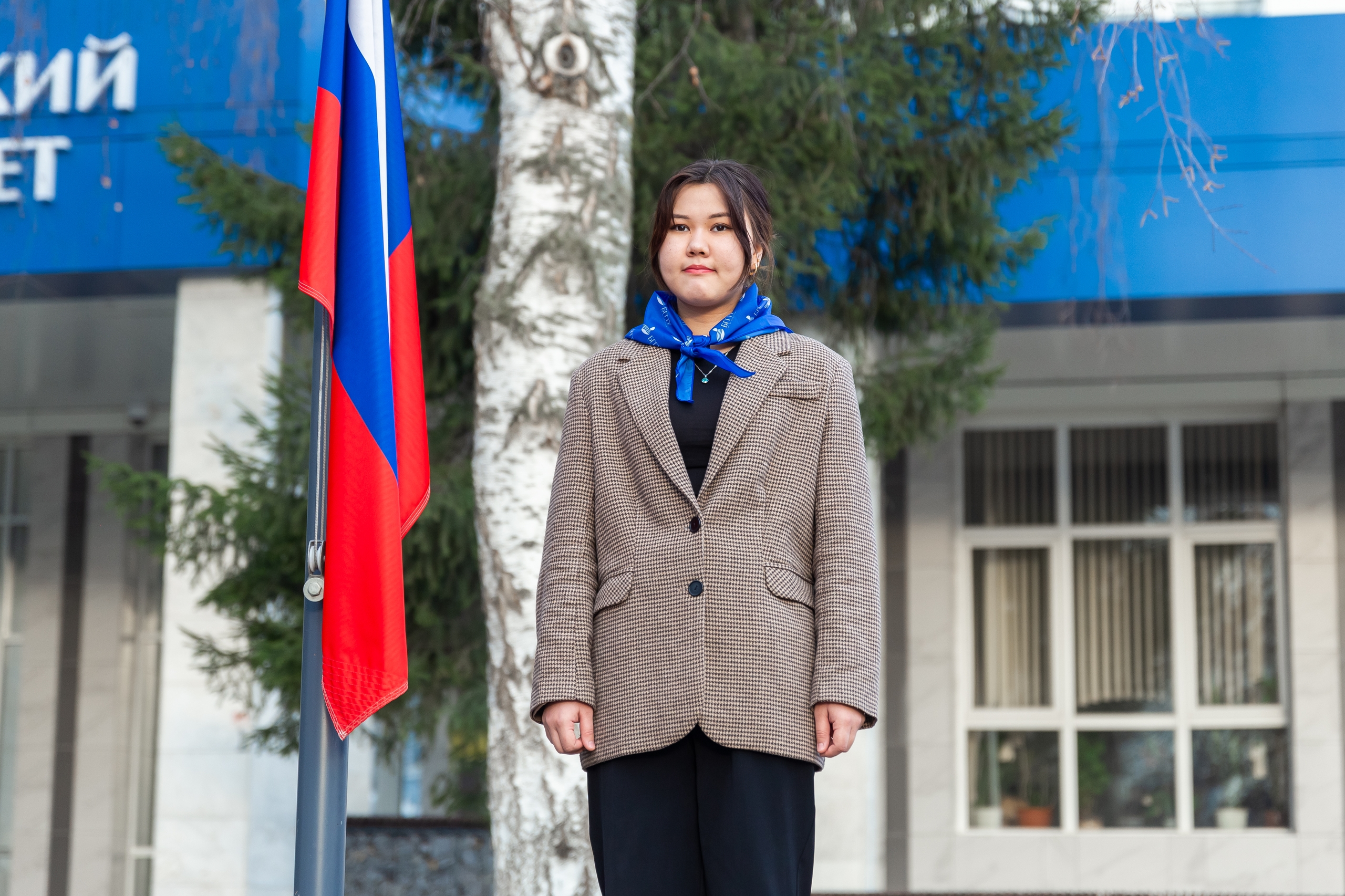 Почетное право поднять флаги на площади перед университетом получили студенты, имеющие особые достижения в общественной, спортивной и учебной деятельности: