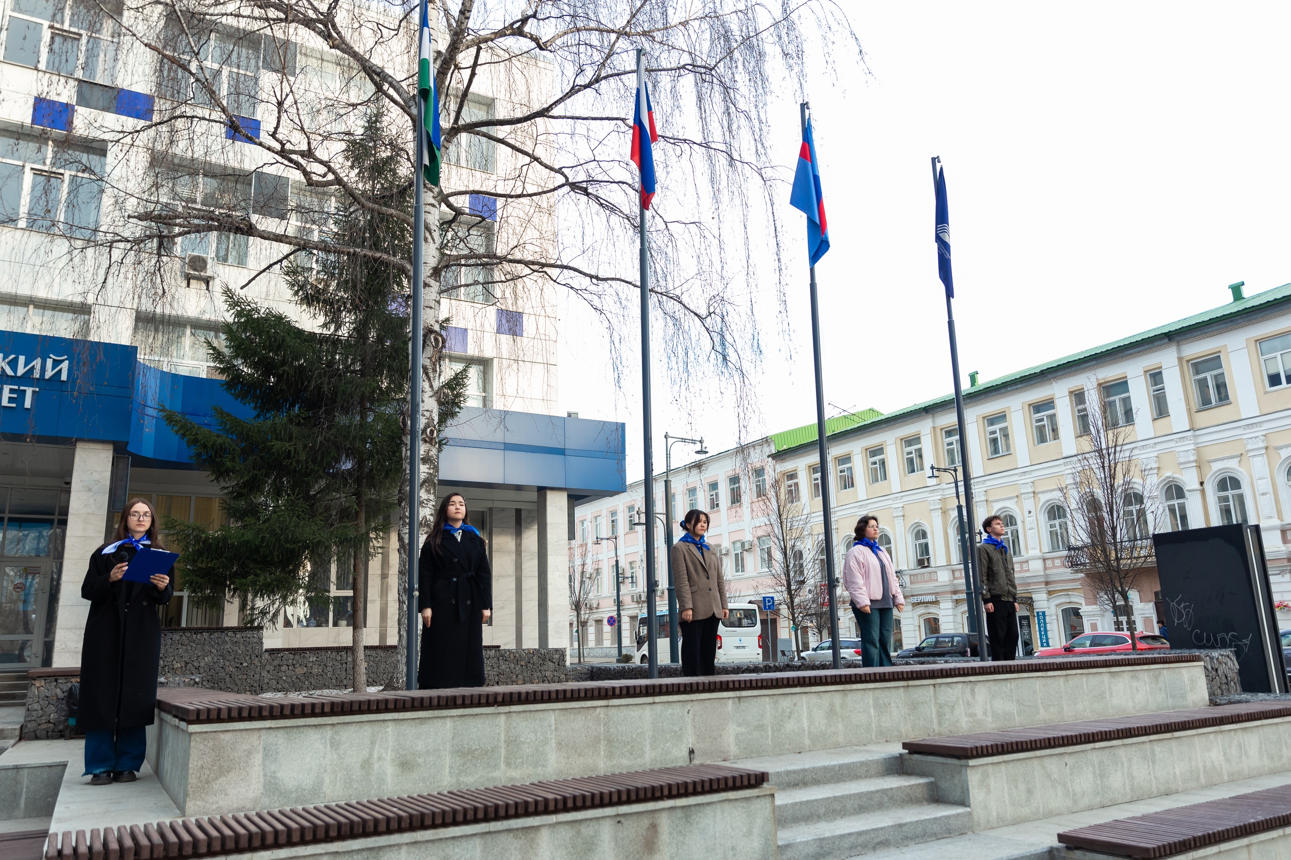 Флаги перед Акмуллинским университетом подняли студенты ЕГФ