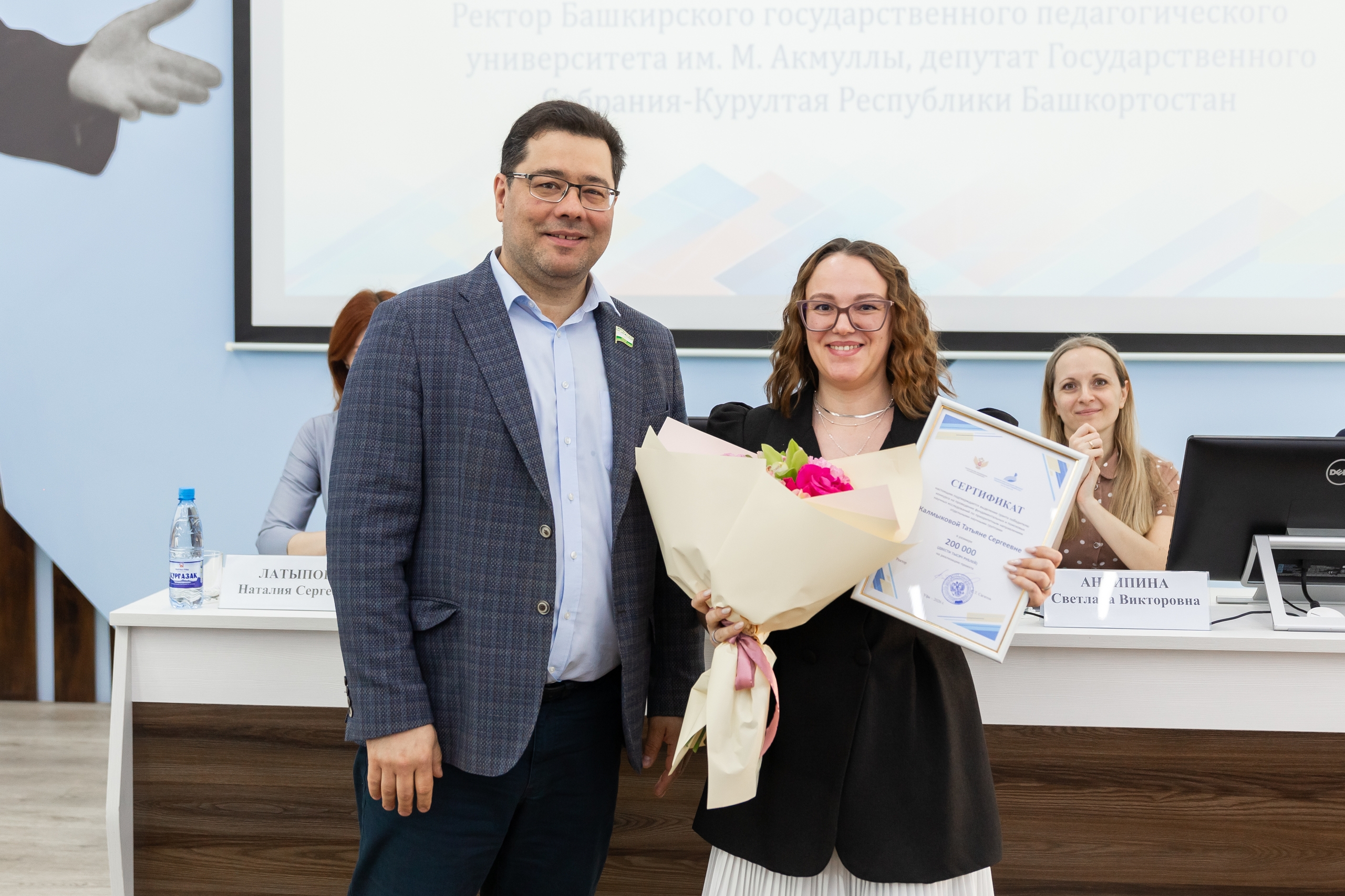 Сертификат на 100 тысяч рублей получил доцент кафедры теории и методики физической культуры и спорта Роман Кулешов. Сертификаты по 200 тысяч рублей были вручены заведующей кафедры дошкольной педагогики и психологии Гузель Шабаевой и старшему преподавателю кафедры дошкольной педагогики и психологии Татьяне Калмыковой. А обладателем сертификата на 250 тысяч рублей стала профессор кафедры генетики и химии Ольга Князева.