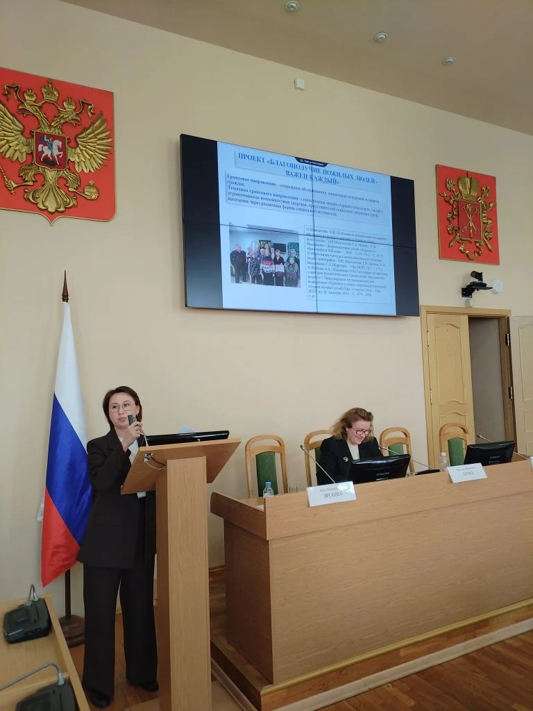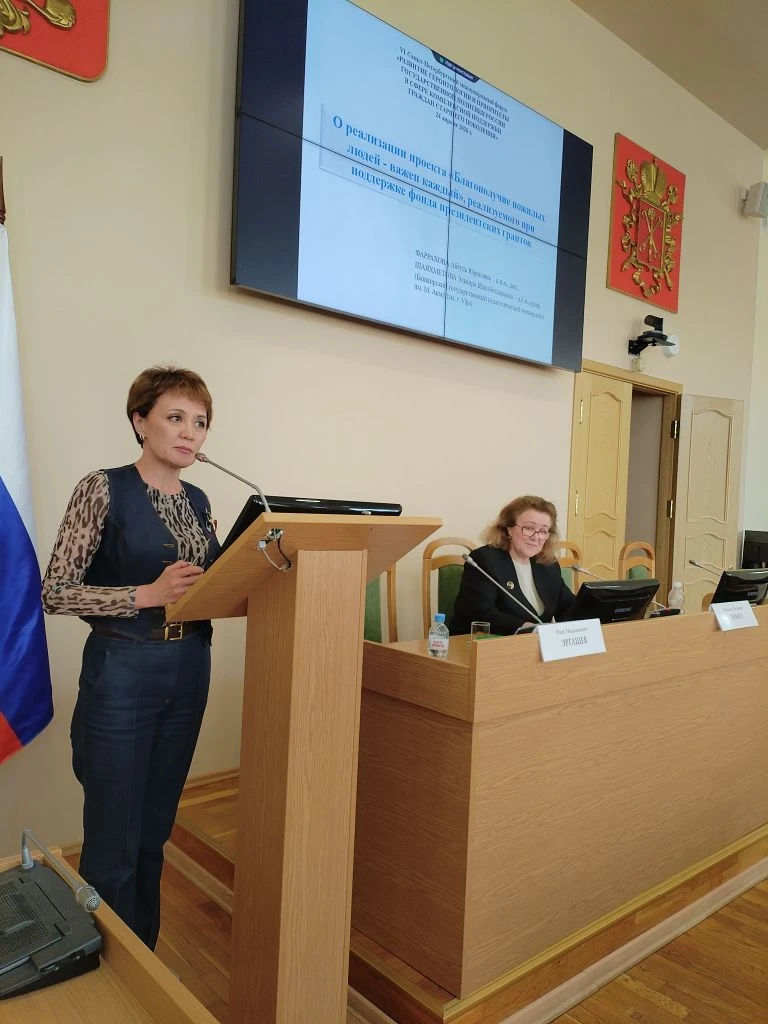 Декан факультета психологии Лилия Халикова и руководитель проекта, доцент Айгуль Фаррахова, представили проект «Благополучие пожилых людей – важен каждый», реализуемый при поддержке Фонда президентских грантов. Этот проект, осуществляемый силами преподавателей и студентов факультета, направлен на формирование у молодых специалистов компетенций для эффективного взаимодействия с людьми старшего возраста.