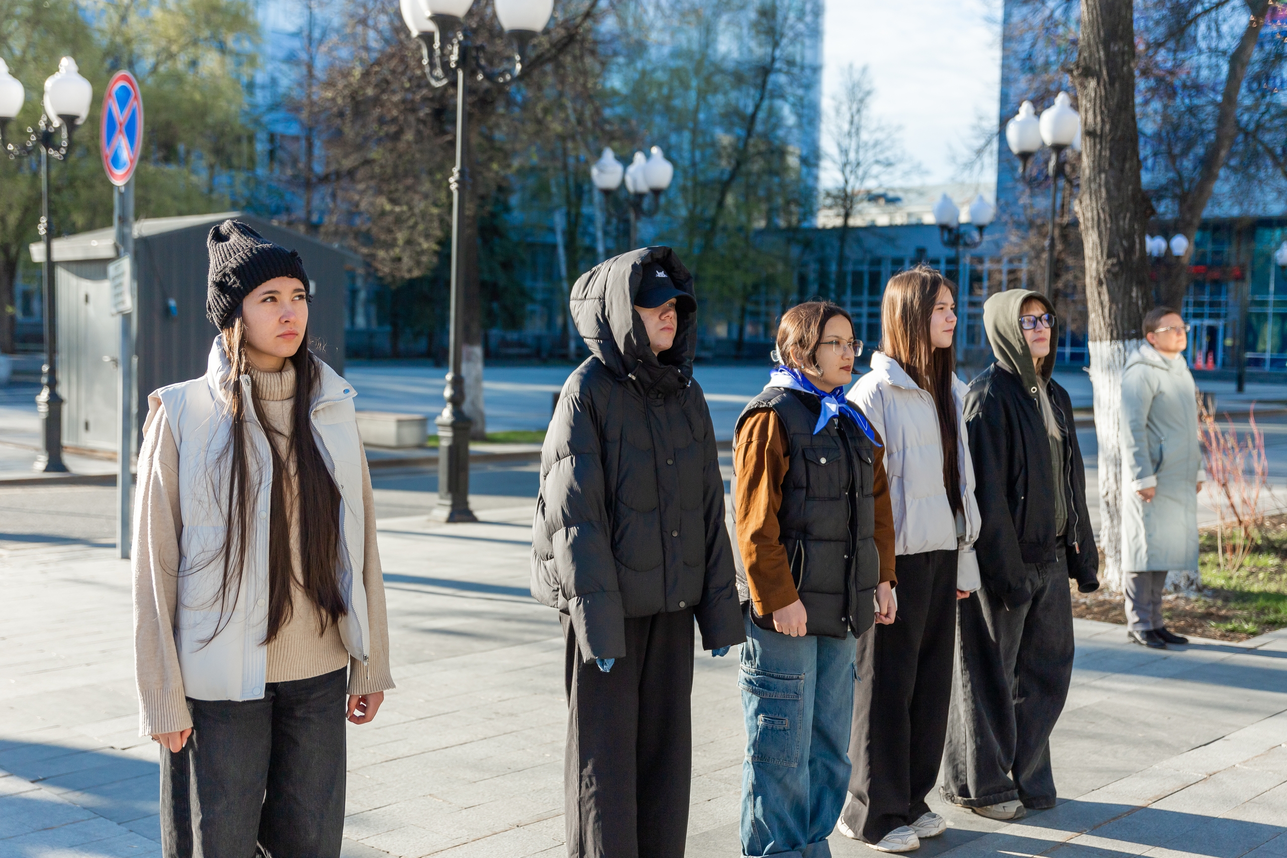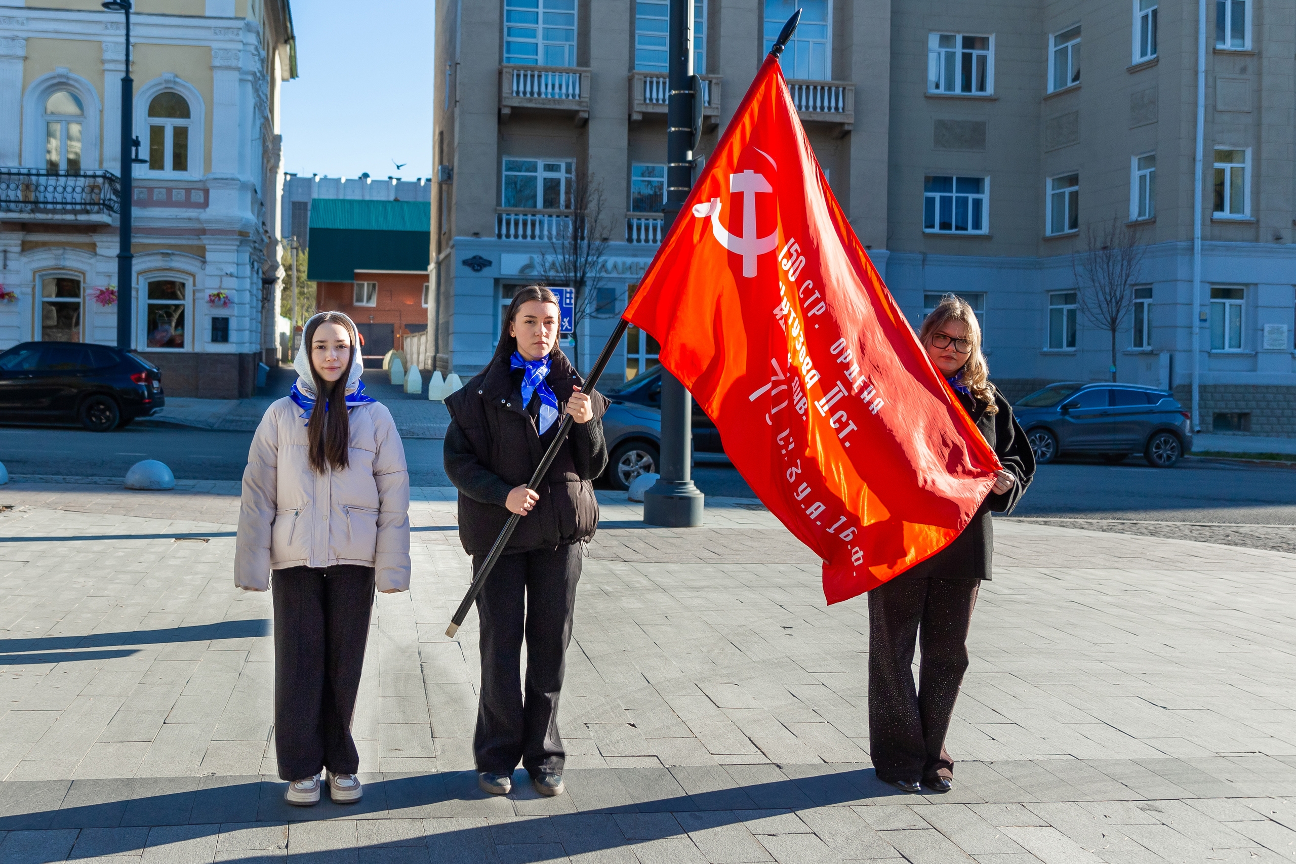Почетное право поднять флаги на площади перед вузом было предоставлено студентам, имеющим особые достижения в общественной, спортивной и учебной деятельности: