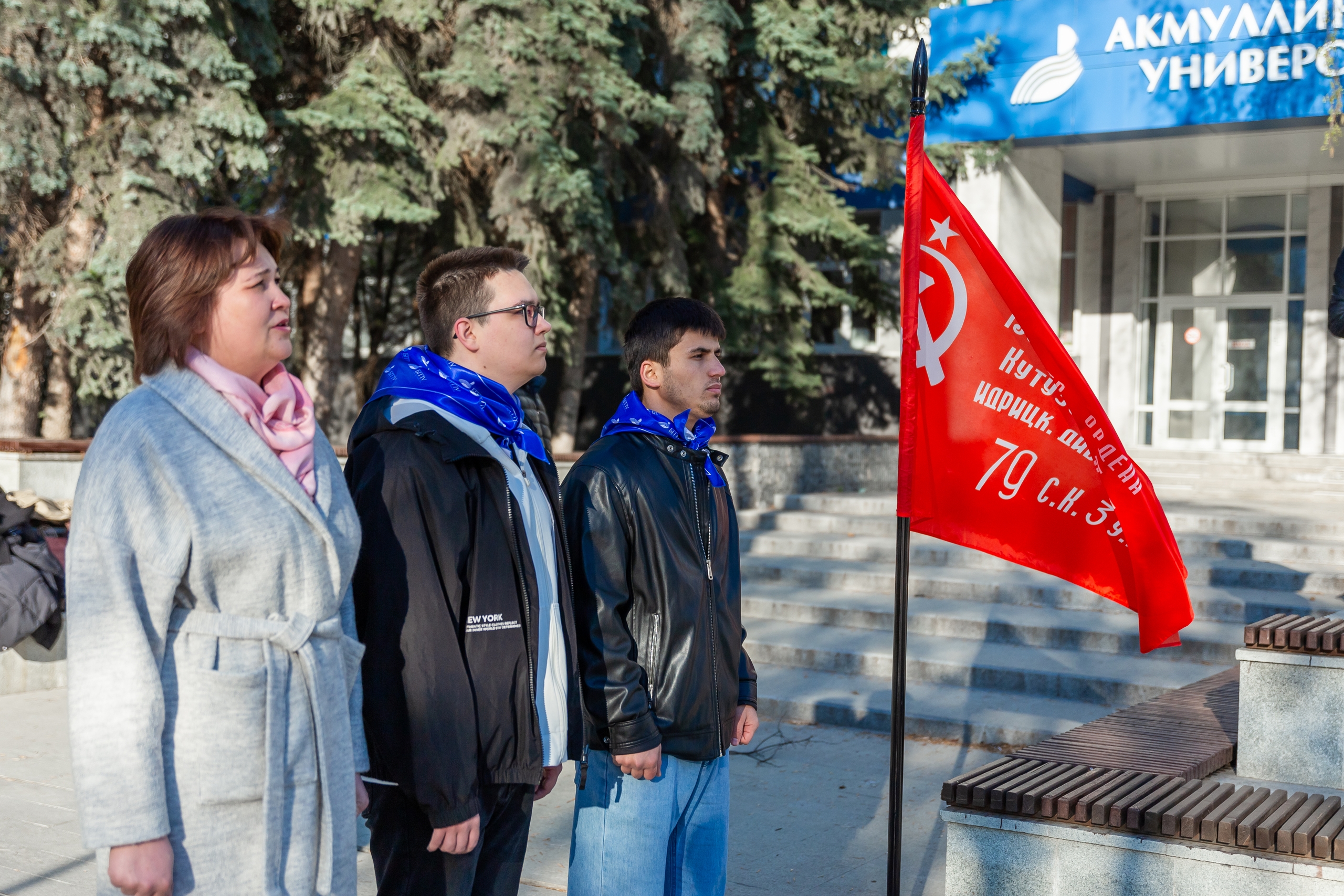 Студенты Акмуллинского колледжа подняли флаги на площади перед БГПУ им. М. Акмуллы