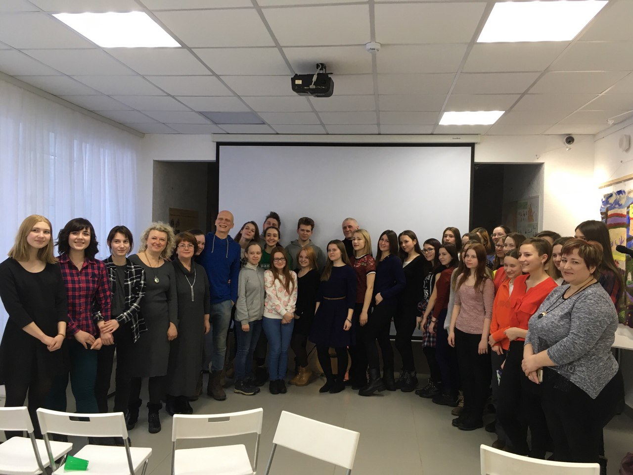 В очередной четверг, 29 марта 2018 года, в Белой гостиной состоялся концерт Владимира Колесникова – поэта, артиста, барда, лауреата многих фестивалей. Для студентов 1, 3 курсов ИФОМКа и преподавателей он исполнил песни о любви, весне, родном городе, джазе, в которых прозвучала музыка души: «31-ое августа», «Игра», «Джаз», «Ангел» и многие другие.