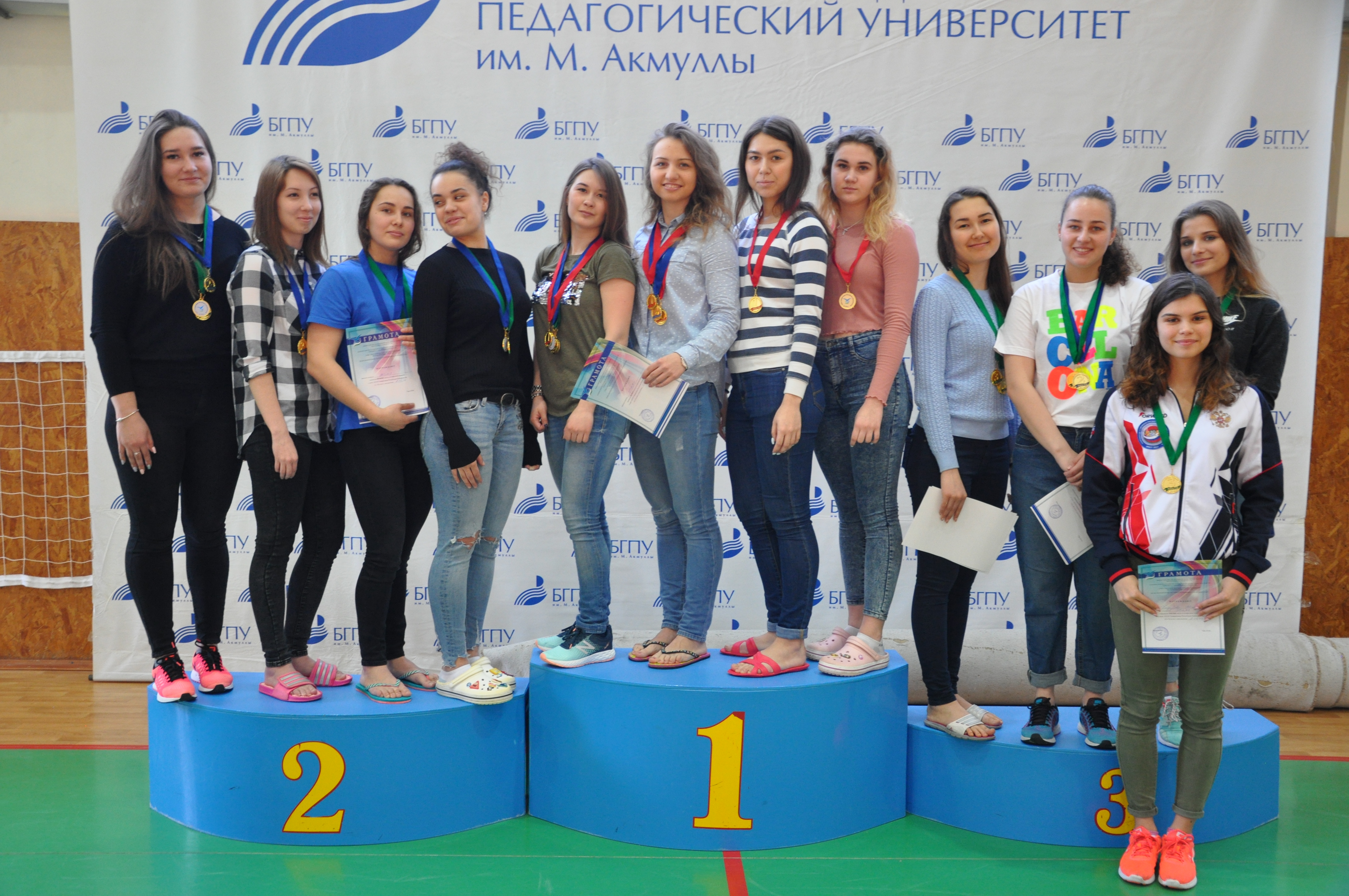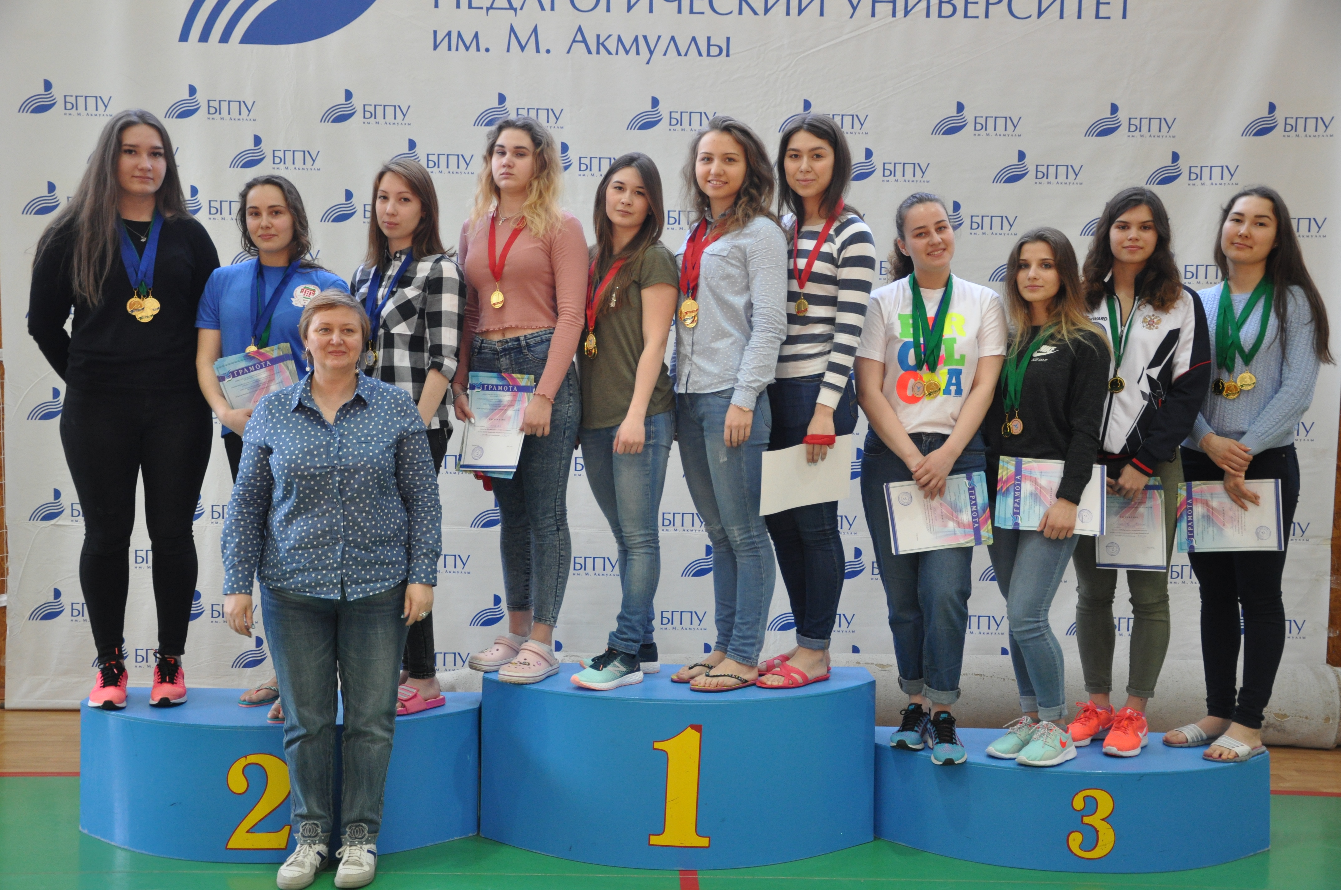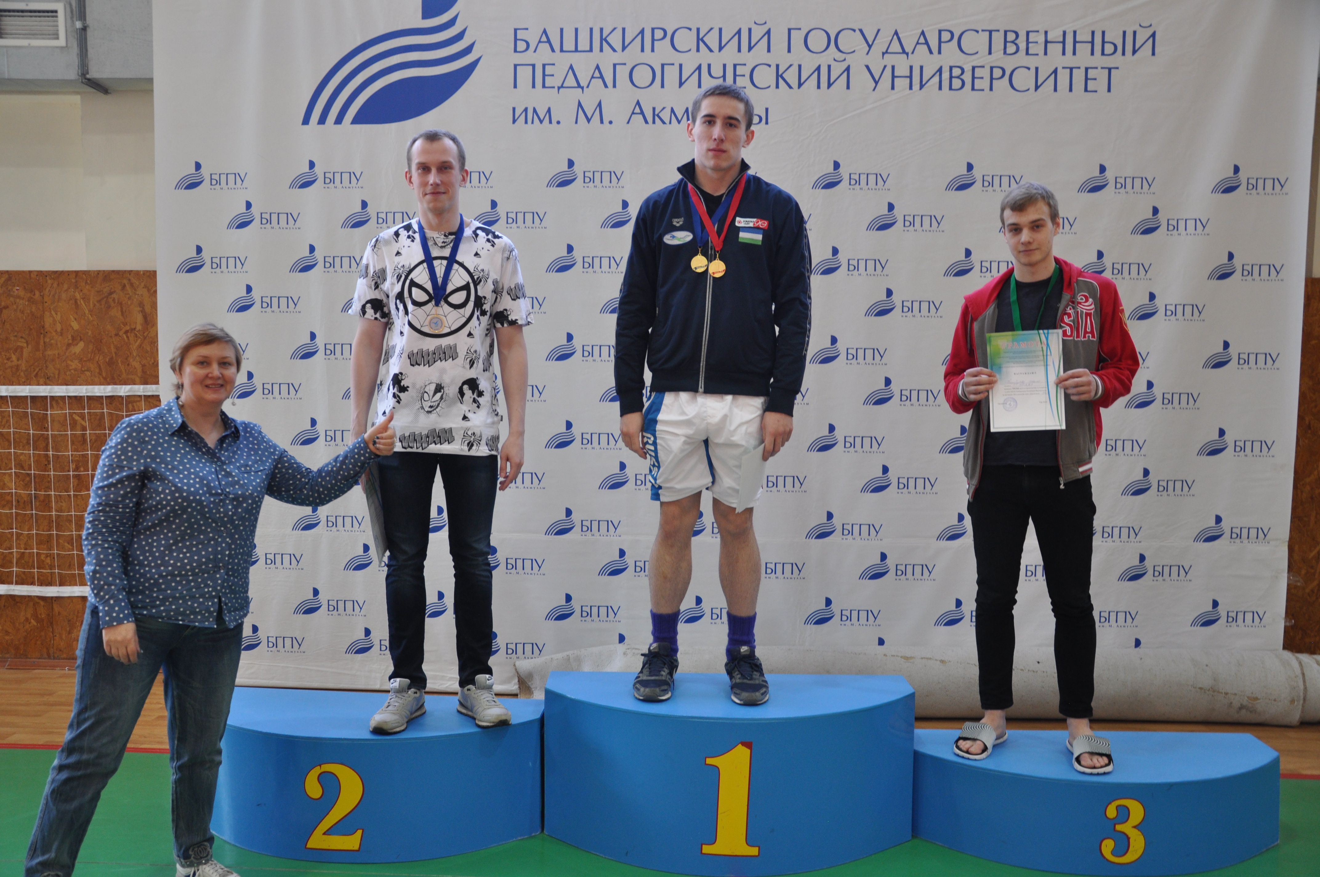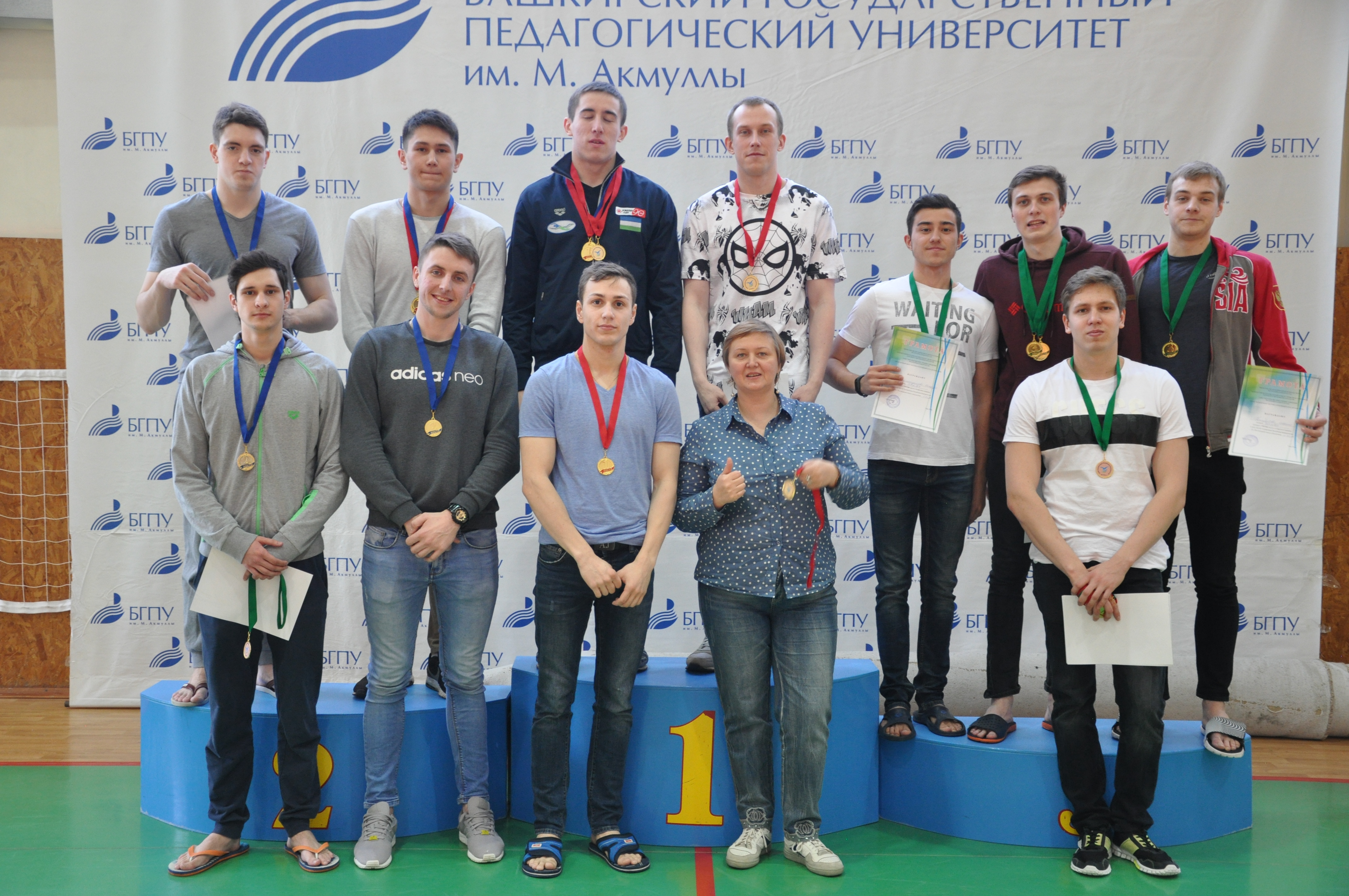 Триумфальной победой студентов нашего университета завершились соревнования по плаванию в зачёт 27-й Универсиады Республики Башкортостан. Сильнейшие пловцы завоевали 11 золотых, 5 серебряных и 1 бронзовую медаль. В обще командном зачёта сборная команда БГПУ им. М.Акмуллы под руководством тренера Каримова Р.А. заняла первое место с результатом 16394 очка опередив УГНТУ на 1500 очков, на третьем месте студенты УГАТУ. Вот они наши герои: