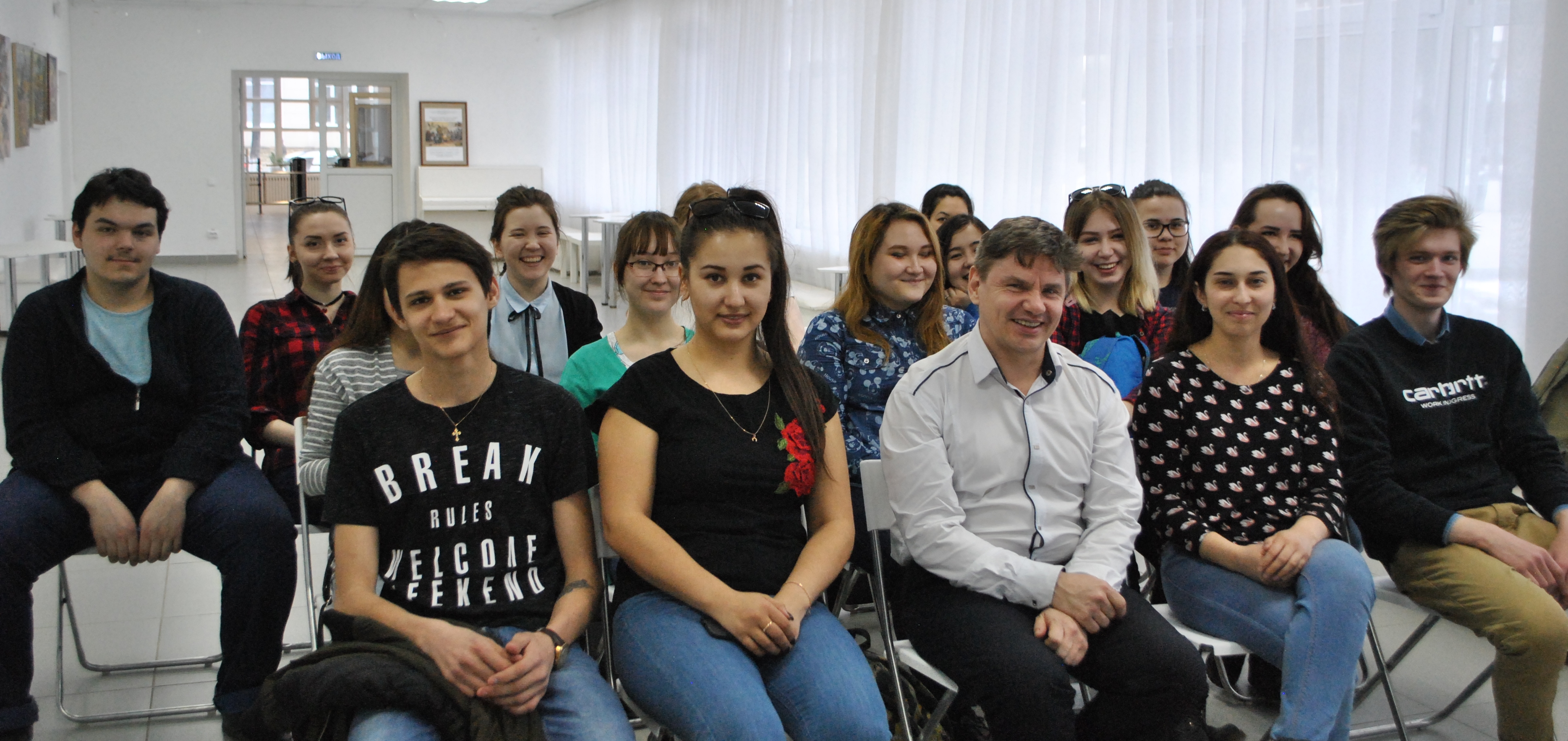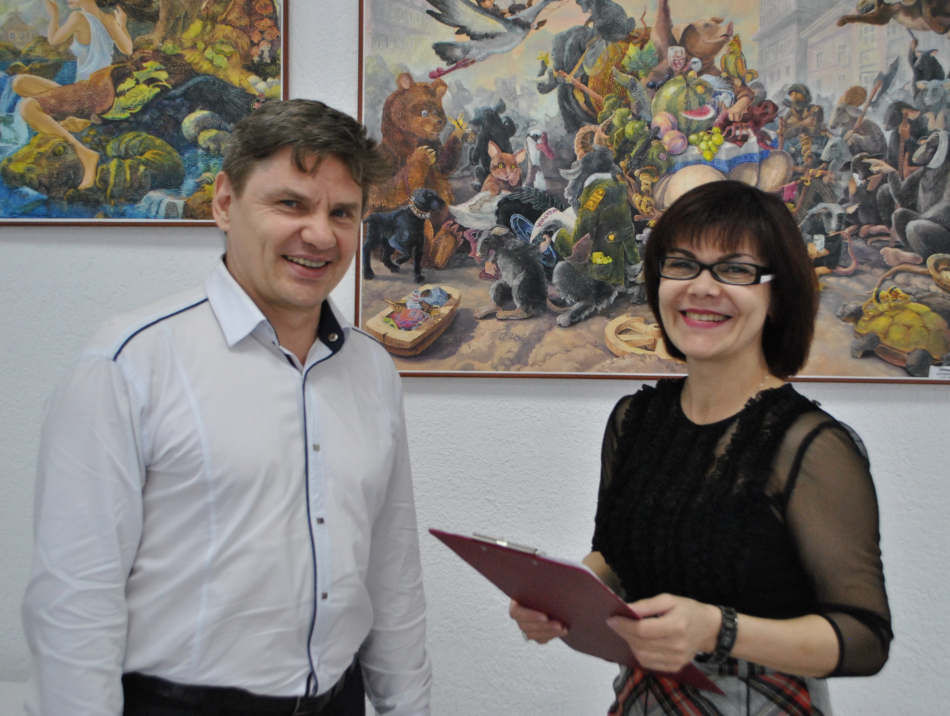 Официальное открытие выставки началось с короткого выступления автора о своем творческом пути и презентации других работ, живописи и графики.  Декан Художественно-графического факультета - Масалимов Т.Х. выразил благодарность Михаилу Александровичу за выставку и творческую встречу со студентами. В рамках выставки запланированы мастер-классы для студентов и сотрудников университета. Запланирована совместная работа с обществом "АртПуть" по проекту "Парк любимый городской" и проведение проектно-выставочных мероприятий.