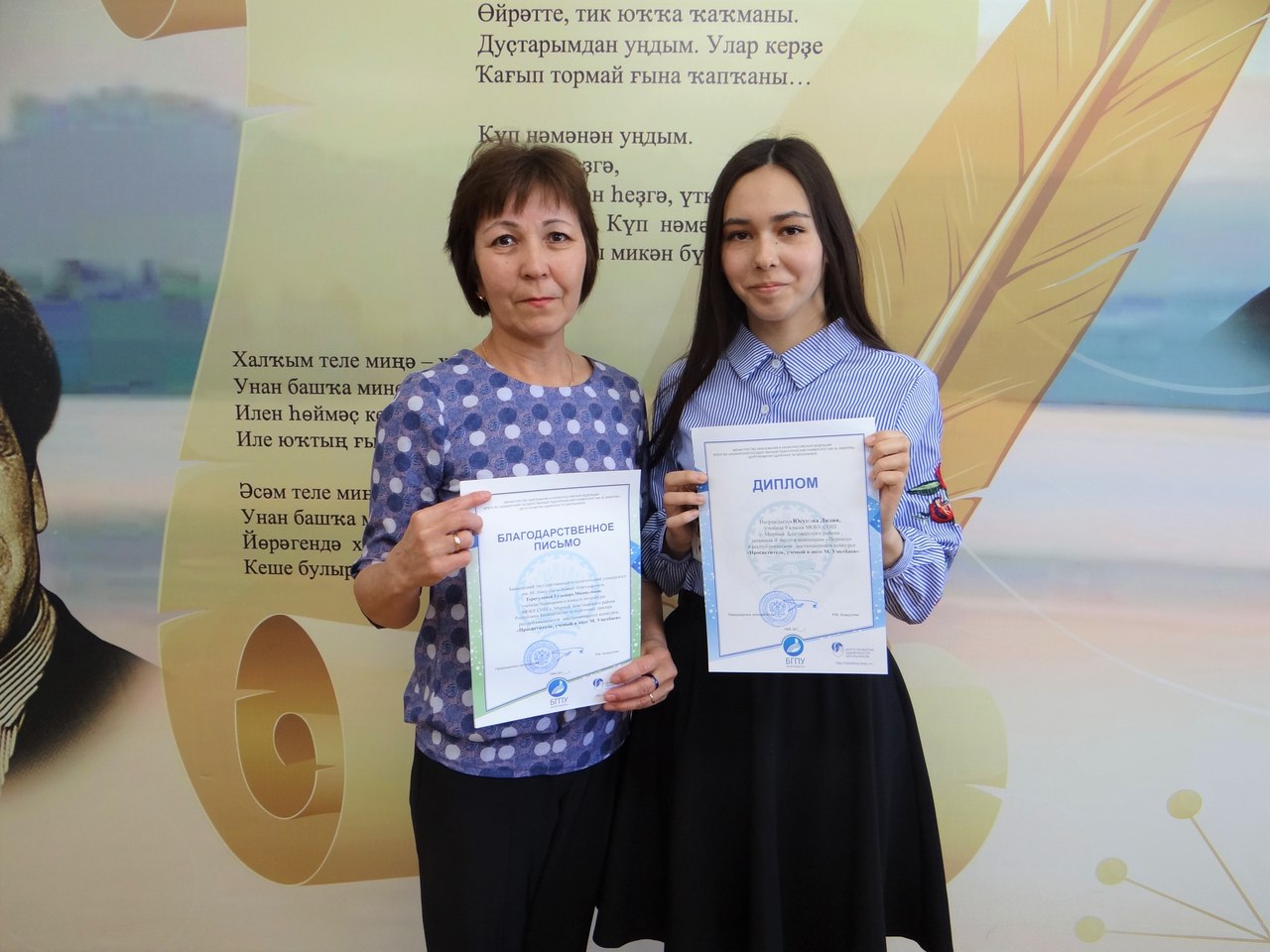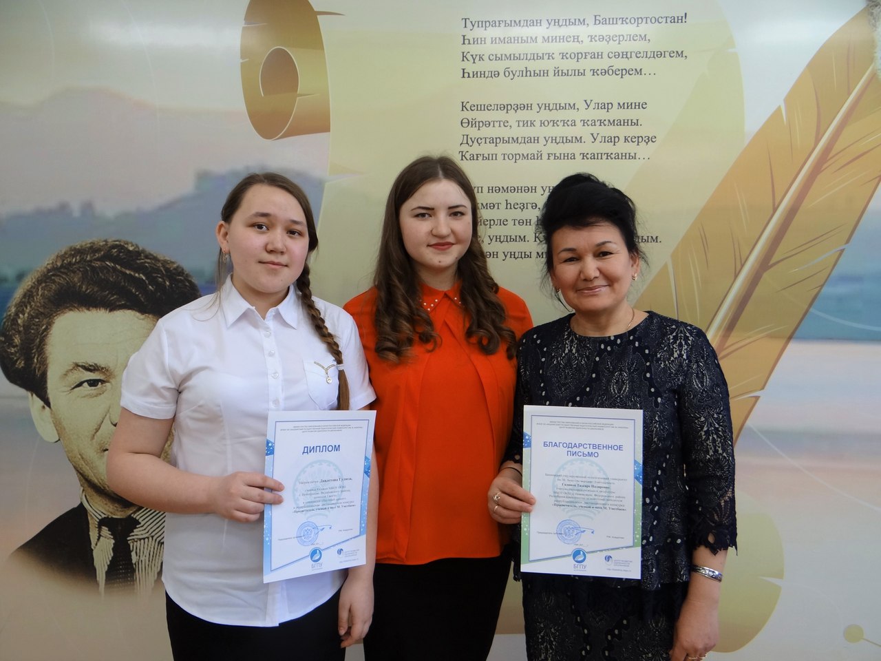 12 апреля на факультете башкирской филологии состоялось награждение победителей и призеров республиканского дистанционного конкурса «Просветитель, ученый и поэт М. Уметбаев». Конкурс проводился с целью повышения интереса учащихся общеобразовательных учреждений к изучению творчества М. Уметбаева.Организаторами конкурса выступили к.ф.н., доцент кафедры БЯиМП З.А.Хабибуллина, к.п.н., доцент кафедры БЯиМП М.С.Давлетшина.