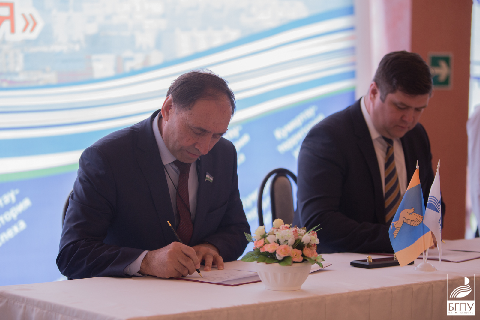 Сразу после пленарного заседания состоялось торжественное подписание соглашения о сотрудничестве БГПУ им. М.Акмуллы и администрации городского округа город Кумертау и вручение сертификата муниципальной площадки профессионального развития работников образования на территории ГО г. Кумертау.